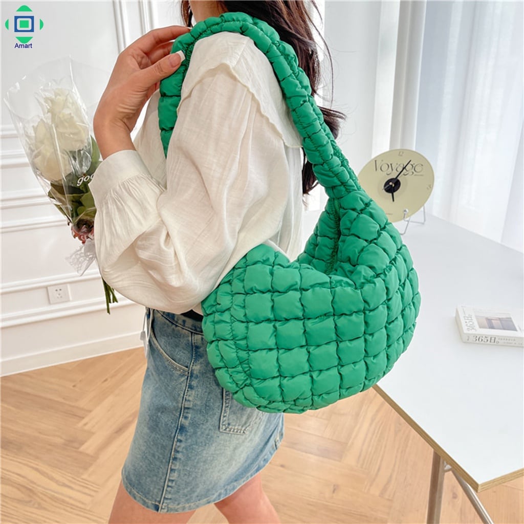 This puffy tote bag by amart.sg caught my eye for its perfect size and poufy pillowy squares. It hits the sweet spot for people like me that carry around large water bottles who do not want to commit to a bag as huge as the Hobo Shoulder Bag.