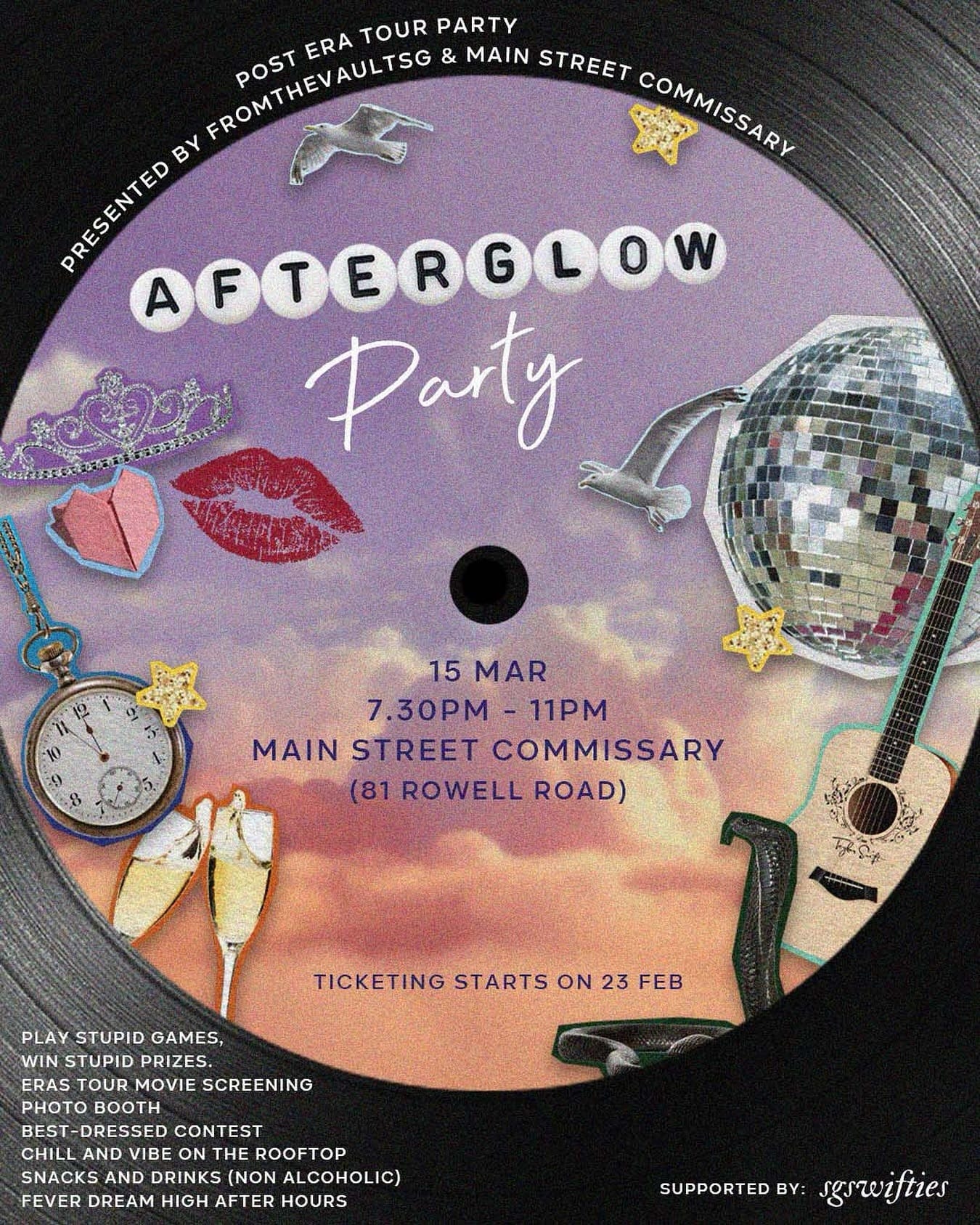 If you’re already looking for a treatment to cope with the post-concert depression, From The Vault will be hosting an Afterglow Party to celebrate the end of the eras tour in Singapore.