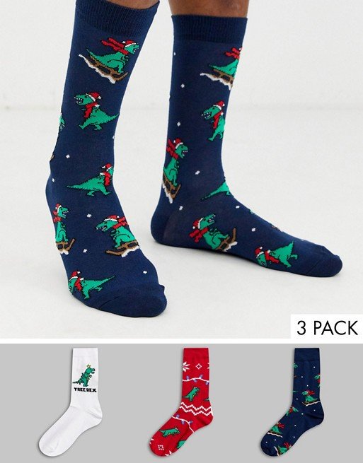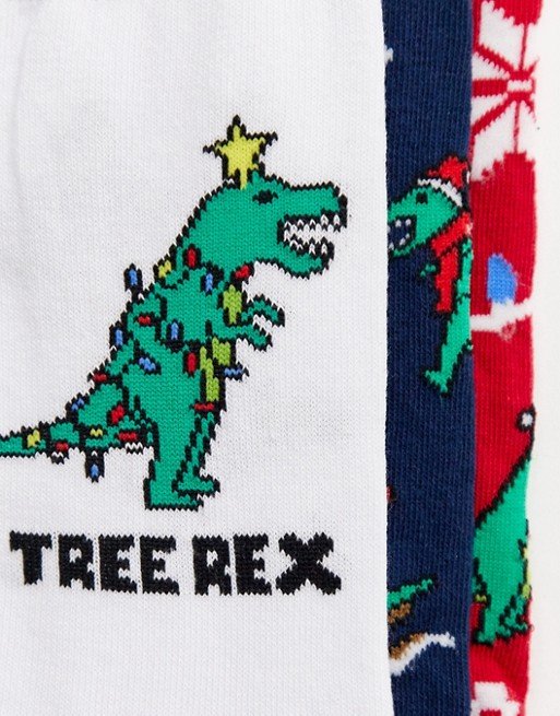 3. 3-Pack Ankle Sock with Christmas Dinosaur Tree Rex Print