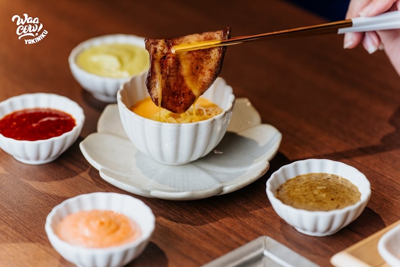 However, the sauces are what makes Waa Cow! Yakiniku stands out. There are seven dipping sauces to choose from, including the complimentary Garlic Butter Teriyaki and Ponzu Negi. The other five — Truffle, Mentaiko, Wasabi Mayo, Sweet Sukiyaki with Raw Egg, and Spicy Miso with Leek — can be savoured through the Signature All Dips Platter (S$3.90).