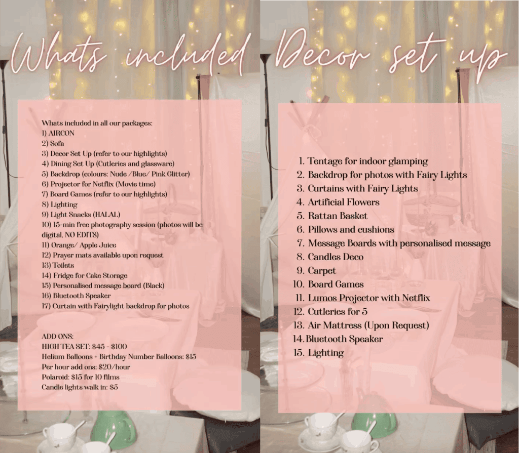 For those who glamp for the ‘gram, you’d be pleased to know that there’s also a complimentary photoshoot session (15 minutes). All photos will be sent to you in digital format, so you can freely duplicate those pictures and send them to your friends for keepsake.