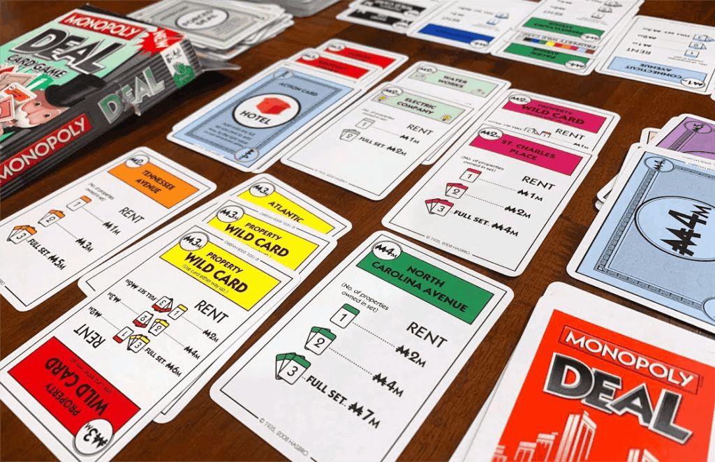 Monopoly Deal – This card game requires you to own 3 full property sets and manage your finances. There are plenty of action cards, property, and cash cards that you have to manage strategically. Lots of screaming is guaranteed when your friend throws out the notorious deal-breaker action card which steals your completed set.