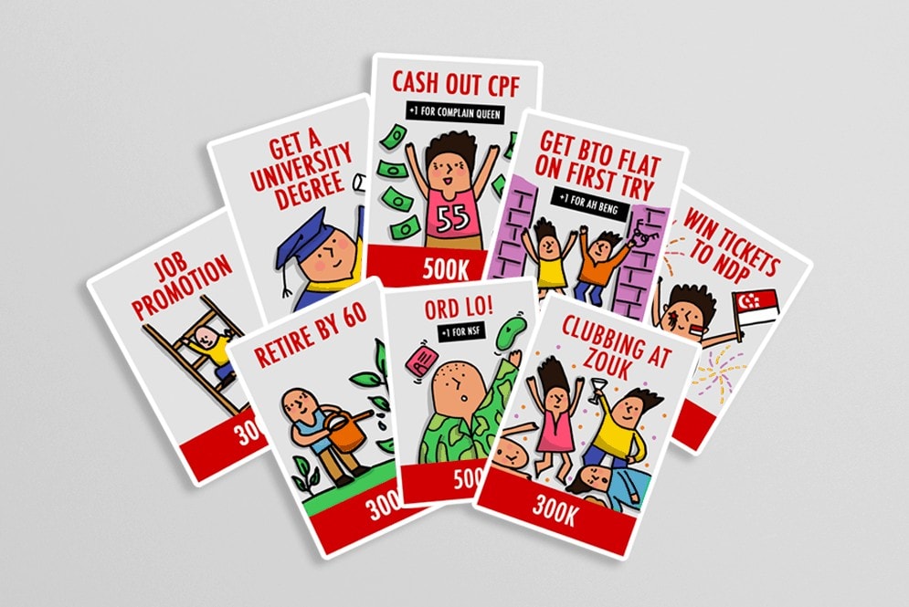 Singaporean Dream – Each player gets a personality card that comes with specific perks and bonuses. Personalities include Ah Beng, NSF, Influencer, Aunty, High Flyer and PSLE Top Scorer. Each character has different dreams. Your goal is to fulfil their Singaporean dreams, and the fastest one wins the game.