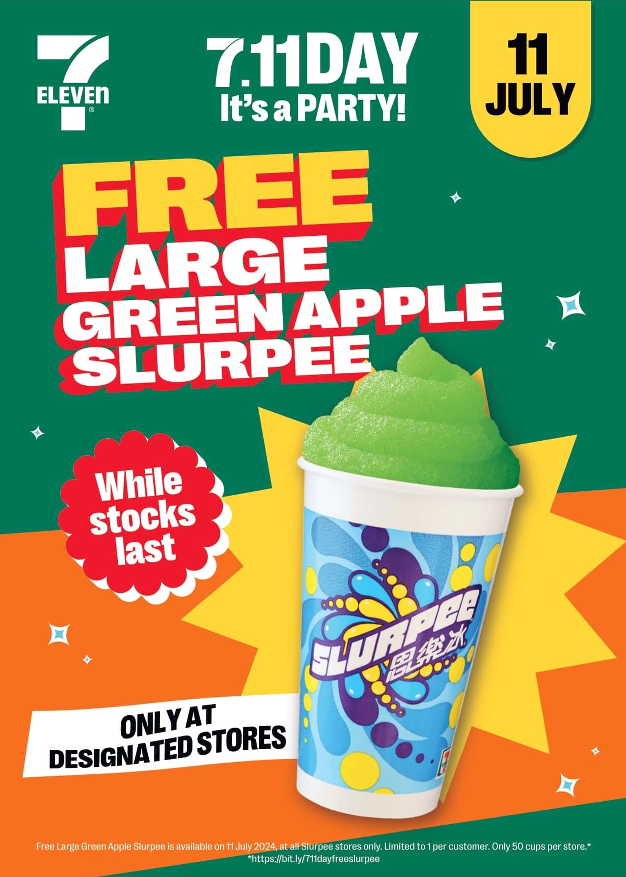 As if things couldn’t get any better, come 11 July, you can be among the first 50 customers to enjoy a free large green apple-flavoured Slurpee at any 7-Eleven store with a Slurpee machine. This couldn’t come at a better time, especially with the insane heat in Singapore.