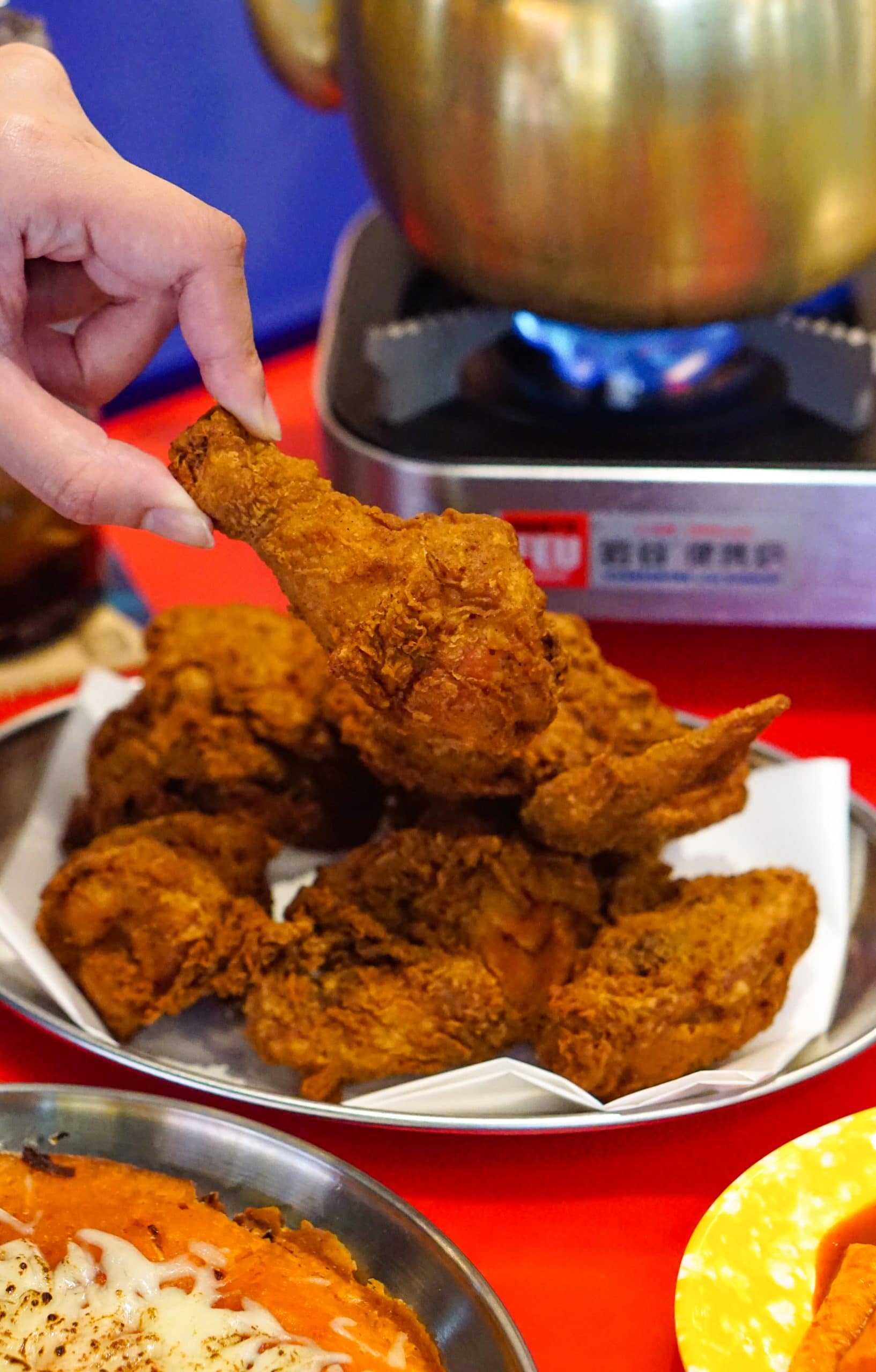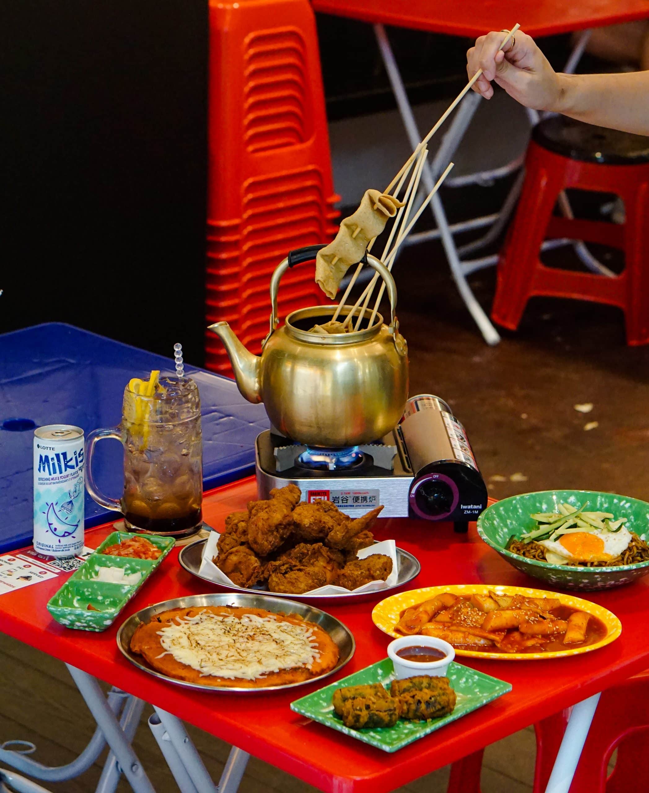 Tucked away amidst the stretch of bars and restaurants along Lorong Mambong, the casual, warm, and cosy 50-seater eatery is designed to resemble a pojangmacha, with its red and blue plastic tables and chairs, disco lighting, and overall laidback atmosphere.