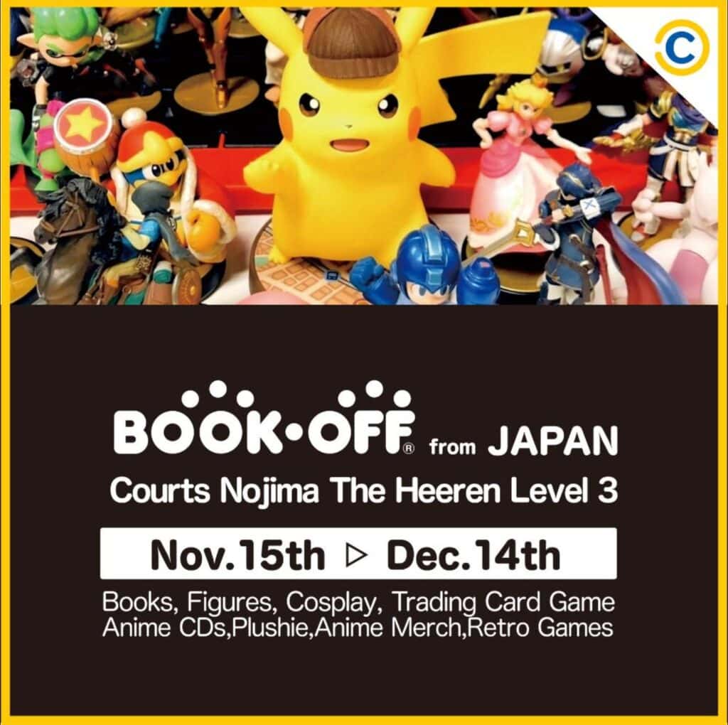 From figurines and plushies to retro games, cosplay items, and even Pokémon cards, Japan’s otaku thrift store Book Off stops by in Singapore. Find anime toys and figurines for prices as low as S$3, or check out the popular Snow Miku collection and rare display of Pokémon cards.