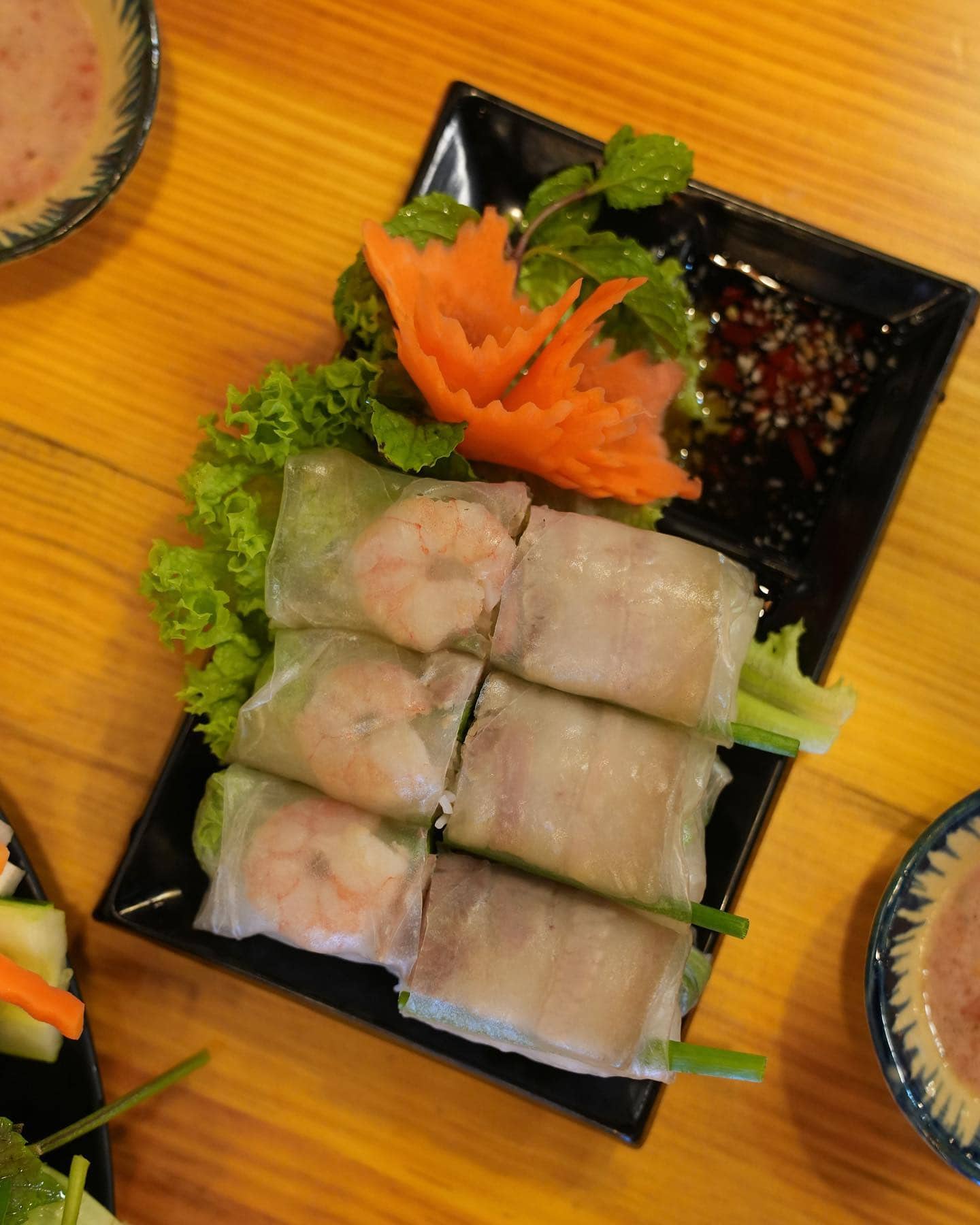 Start off your feasting with appetisers like Fresh Rice Paper Roll with Prawns, Marinated Pork and Vegetables, Fried Frog Legs and Marinated Pork Balls.