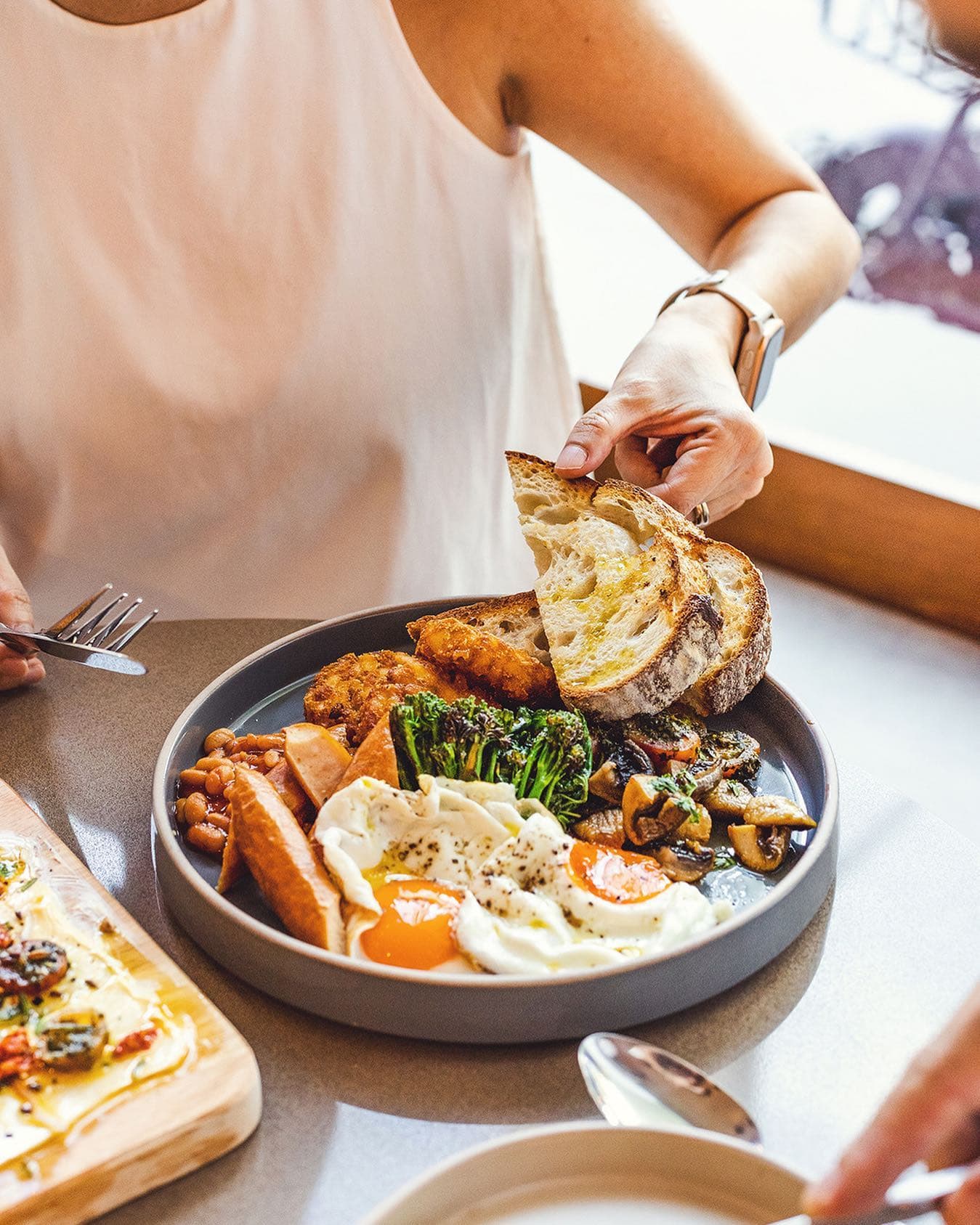 Tuck into a sourdough-forward menu featuring brunch mains like Anna’s Steak and Eggs (S$28), Anna’s BIG Brekkie (S$26), the cafe’s take on a classic big breakfast, and the Dribs and Drops Diversity Board (S$18), which comprises mushroom parfait with smoked maple syrup, cultured butter, beets miso hummus, a selected of sourdough slices, sourdough crackers, mixed nuts, and fruits.