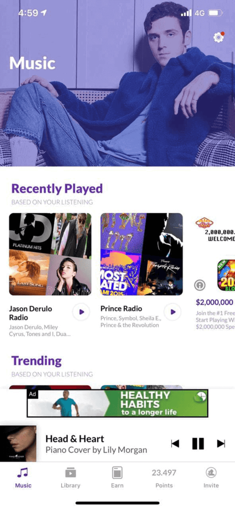 Current Music is an app that features over 100,000 radio stations, and you earn cash by streaming them, listening to music trending lists, or simply leaving the music to play in the background.