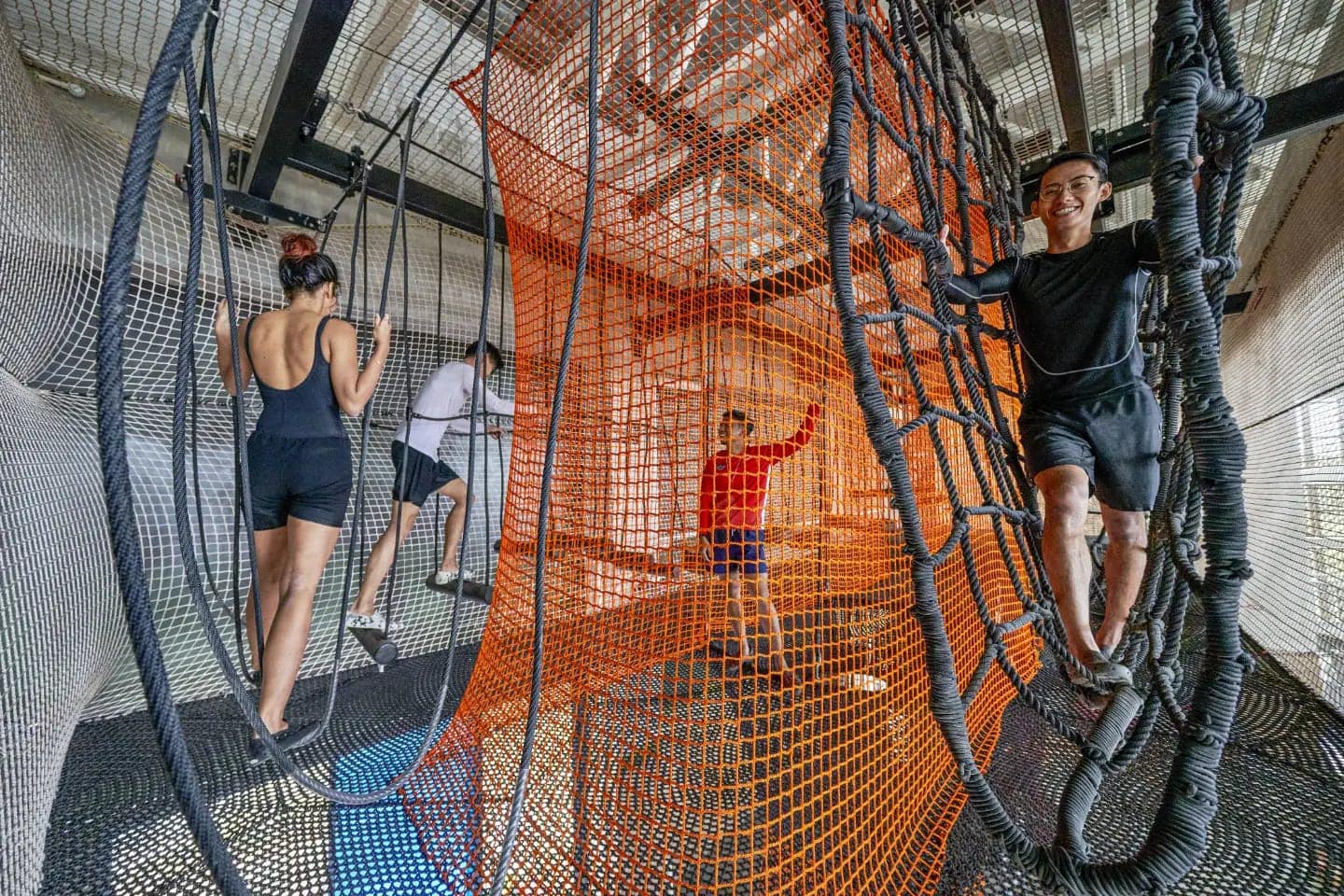 If you prefer to stay clear of the splash zone, you can explore the drier Scramble Net where you’ll be faced with rope courses, tyre platforms, and swings. Let’s hope you don’t have a fear of heights.
