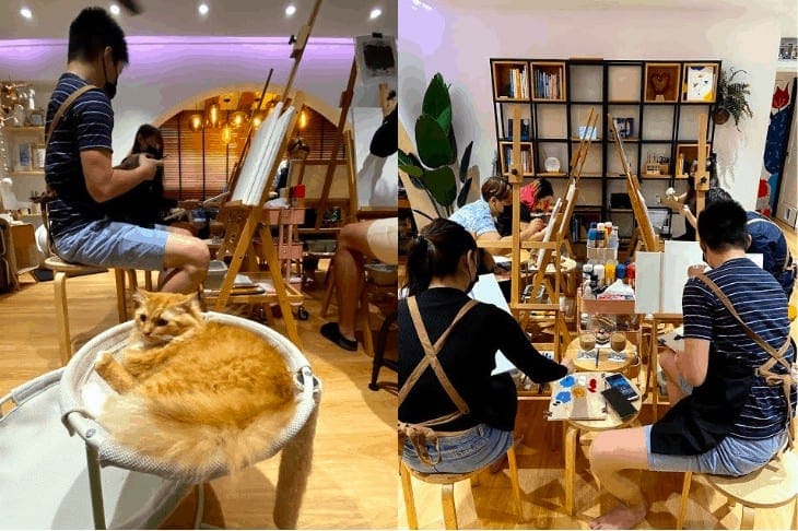 If you are into chilling with fluffy cats and unleashing your art talent on a canvas, then Wildflower Studio is definitely a place that should be on your radar.