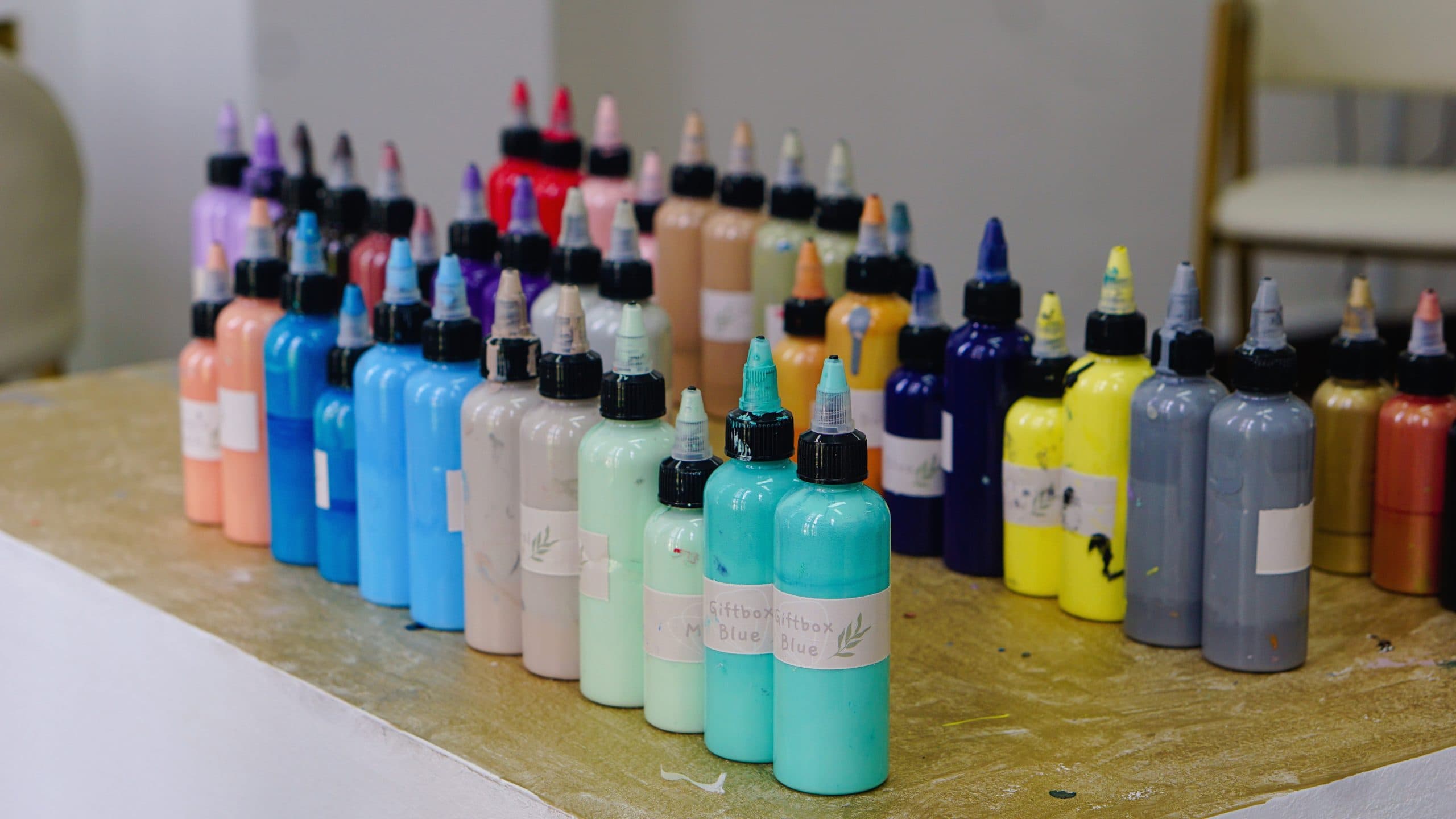 The aesthetic studio space is decked out in cream and pastels, with dappled sunlight streaming in through the windows and a playlist of chill tunes to vibe to. You’re all set for a (hopefully) therapeutic afternoon of art jamming.