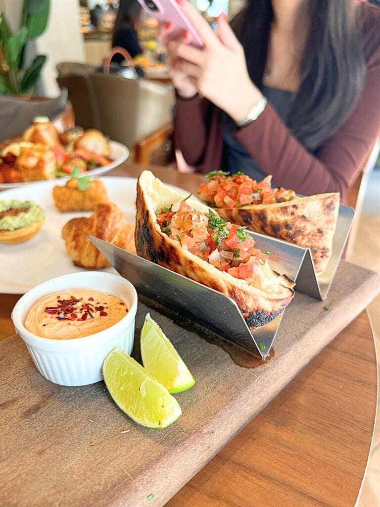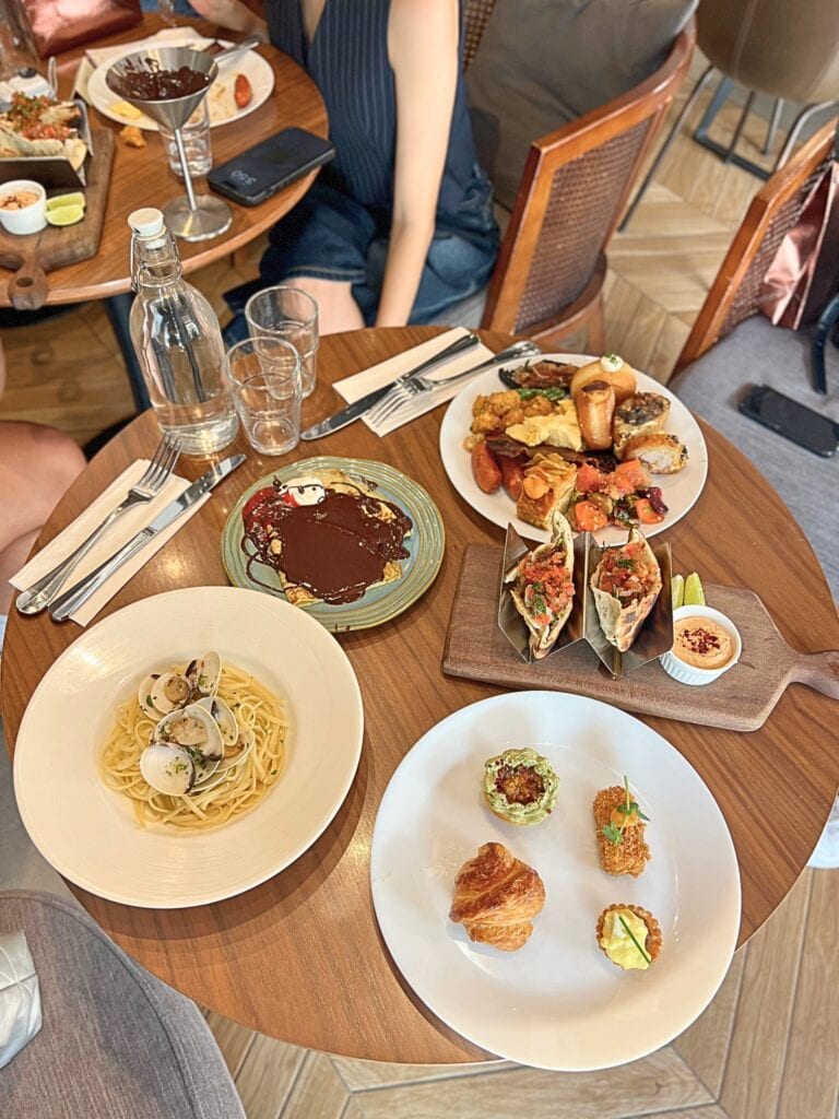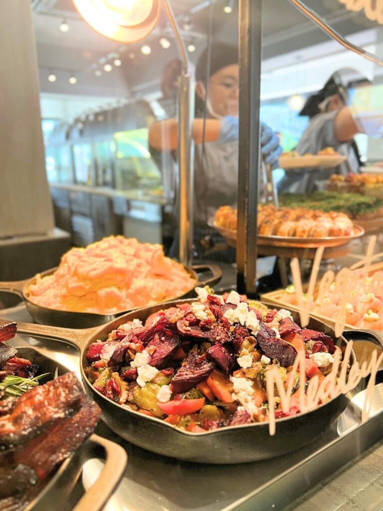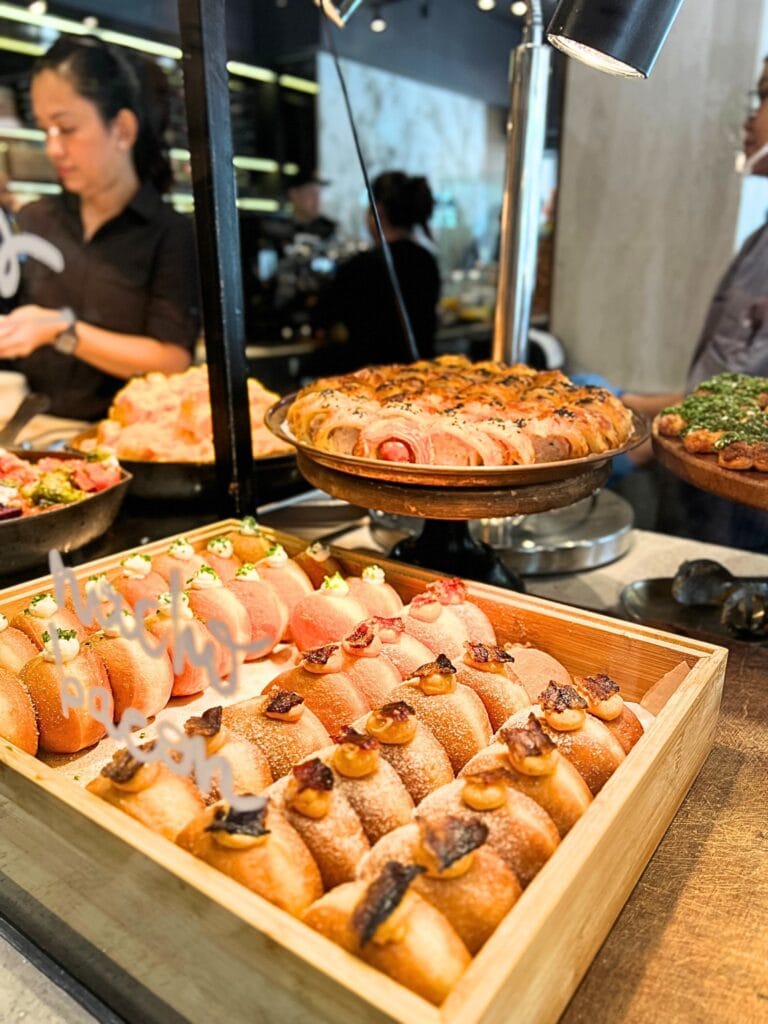 You can start your meal at the bakery section, where you can expect oven-fresh pastries such as croissants, and danishes, paired with the cafe’s chocolate tap.