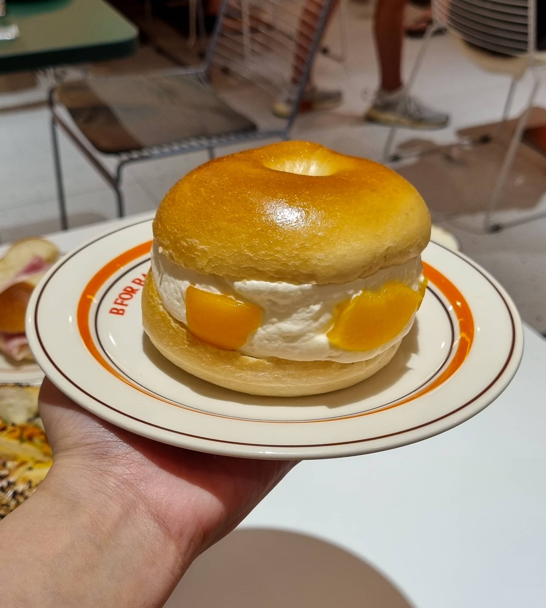 Don’t miss out on the decadent dessert bagels, most notably the Peach Cloud (S$7.50), a creamy dreamy concoction of mildly sweetened whipped cream and peaches reminiscent of the dessert sandwiches you can find at Japanese convenience stores.
