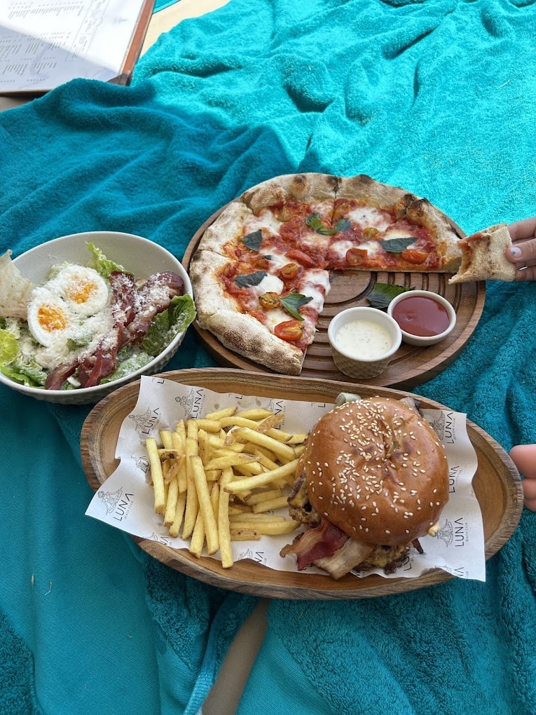 Your beach club experience won’t be complete without good fresh grub like the Margherita Pizza (S$9.28, IDR 110,000) or Wagyu Smashed Burger (S$11.80, IDR 140,000).