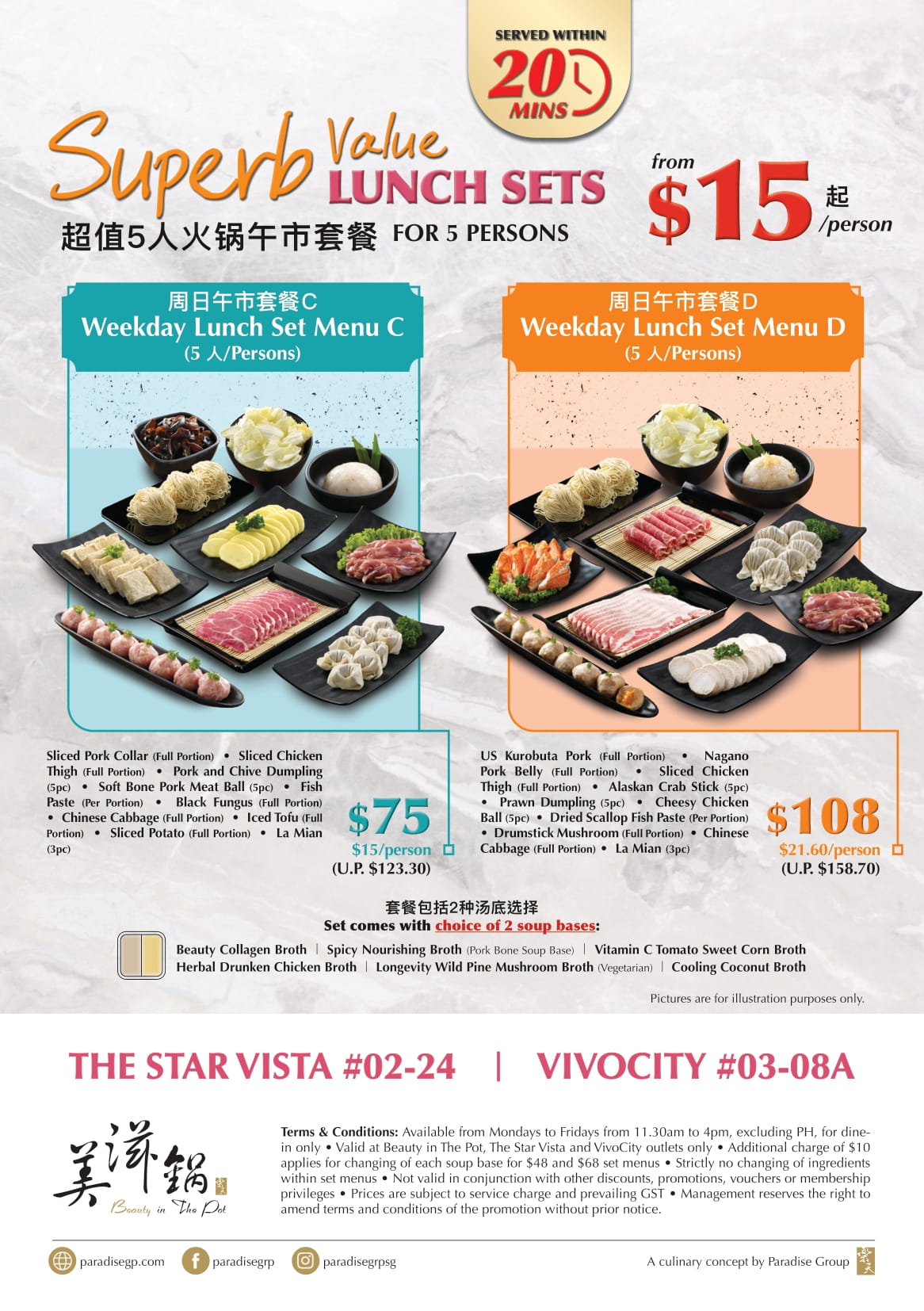 These lunch sets will be available for an unspecified period of time, so round up your family, friends, and colleagues for a hotpot sesh at VivoCity or The Star Vista ASAP!