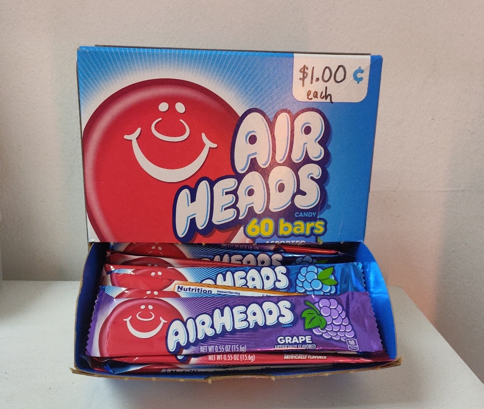 Starting with the Airheads (yes this is actually the name of the candy and not an insult to anyone). They have a pretty wide selection of flavours from grape, to blueberry, and even atropical blend. There’s also the Airhead Ropes and Mini available in store, along with a wide selection of candy like Jolly Ranchers and Nerds.