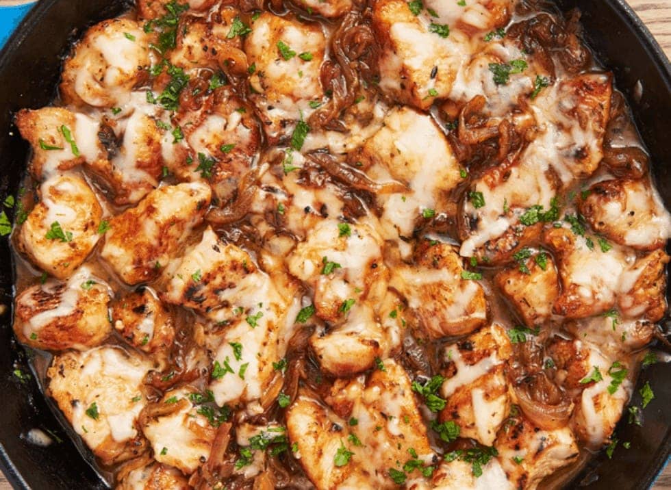 A twist on the classic French Onion Soup, this dish tastes just as good (if not better), and takes up way less time than the traditional soup dish. Best enjoyed with some toasted and sliced baguettes to soak up any extra sauce!