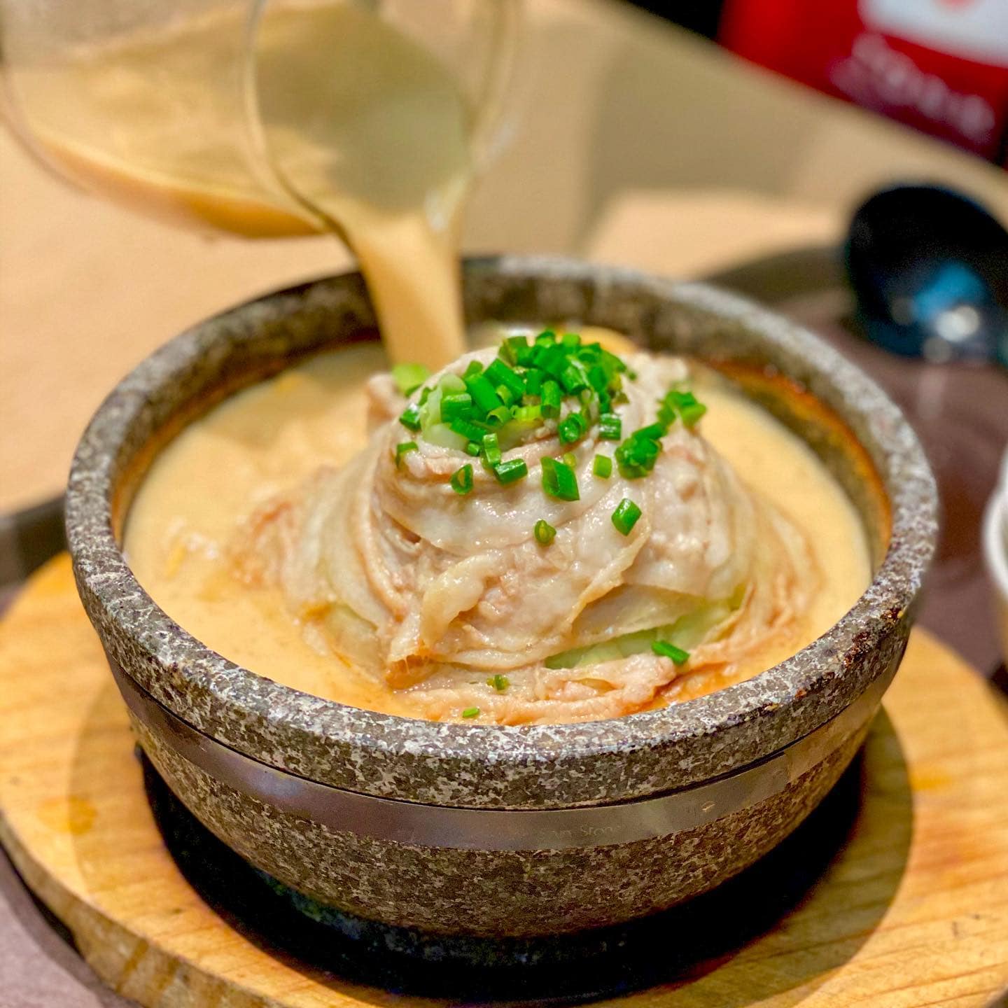 A unique dining experience awaits at Tonkotsu Kazan Ramen, which offers an unprecedented style of “volcano ramen”, in which the noodles are placed in a heated stone pot with a cone-shaped lid. The steam from the simmering tonkotsu-based soup rises from the vent at the top — like a volcanic eruption.