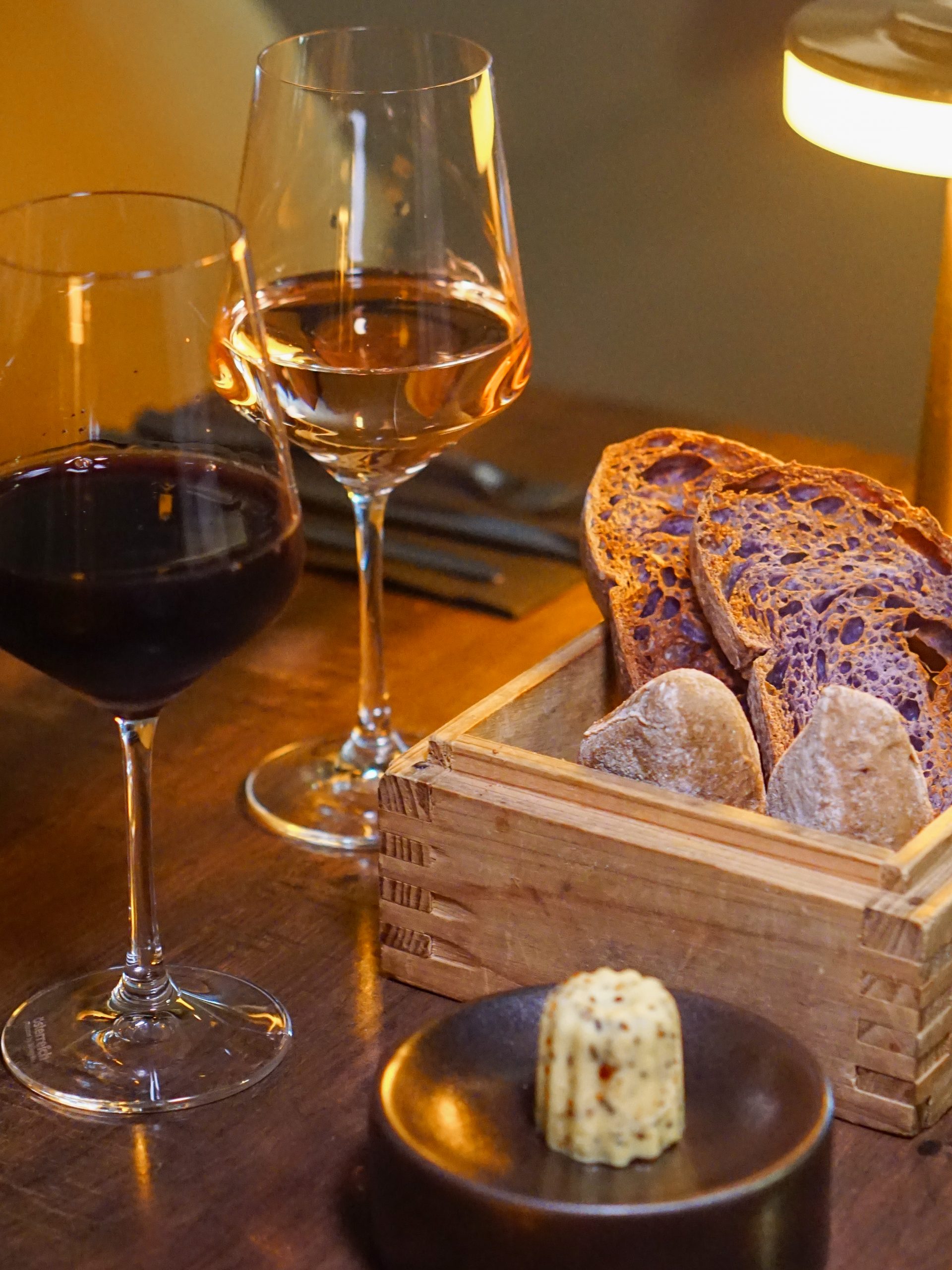 Before you take your pick from the selection of starters, sides, small plates, and main courses, feel free to order wine and enjoy the complimentary bread and butter.