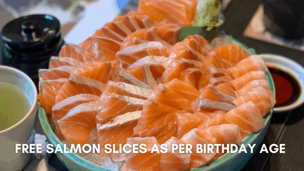 You’ll be able to get as many slices of salmon as per your birthday age for free. So if you’re turning 25 years old, you’ll get 25 slices of salmon!