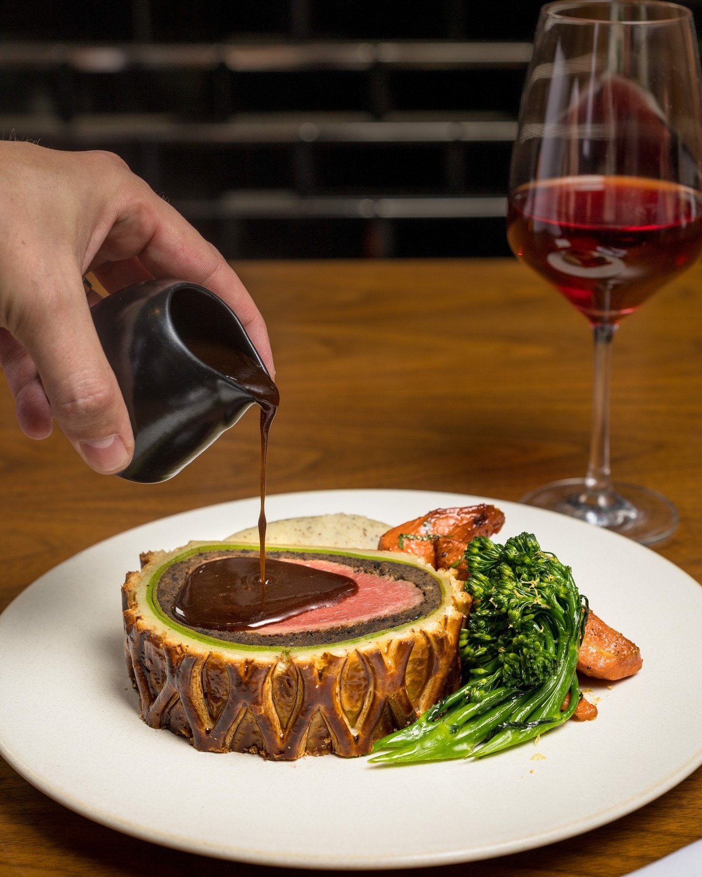 If you’re dining in a group (as you should), make it an extra indulgent occasion by adding on Chocolate Wellington (S$32++), a hearty pastry creation that breaks apart to reveal a waterfall of decadent dark chocolate sauce.