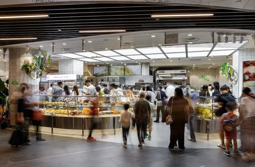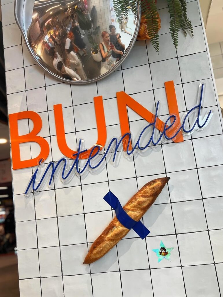 The freshly renovated BreadTalk outlet greets visitors with a contemporary, open-concept bakery design, even referencing the “Comedian” artwork by Maurizio Cattelan.