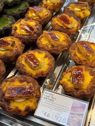 The flavour I am anticipating most is the Truffle Chicken Slider, a gourmet bite featuring a charcoal bun stuffed with mashed potatoes, shiitake mushrooms, and crispy chicken katsu, and the Banana Layer Tart (S$4.60).