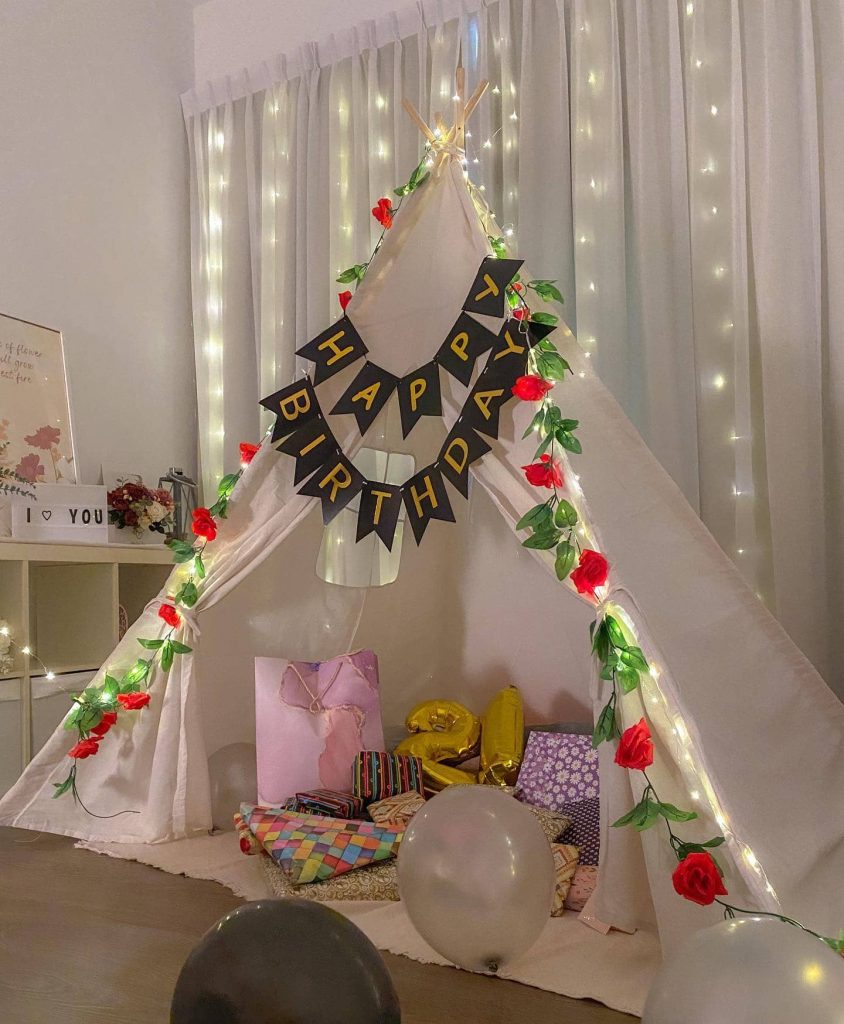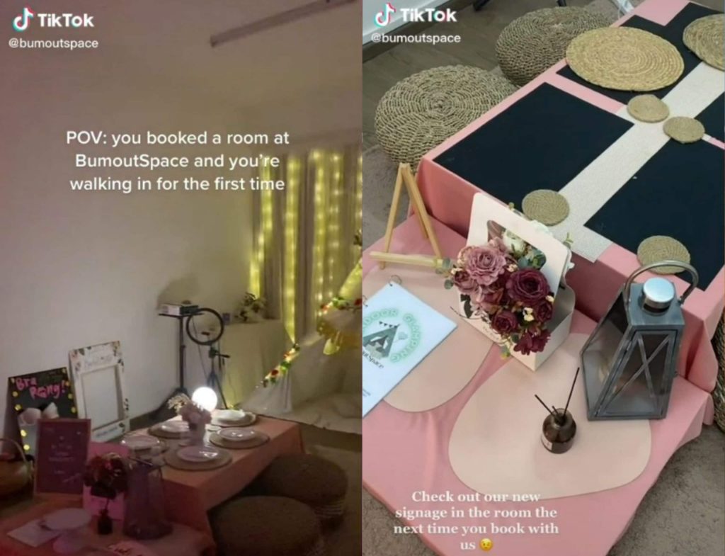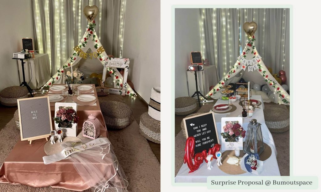 Bigger groups should go for BUMOUTSPACE (S$120 for 4 hours, S$150 for 6 hours), which can fit up to 10 pax. This is the room to book for large-scale birthday celebrations, bridal showers, or date nights, as it comes with a huge projector and a glamping tent decked out in fairy lights.
