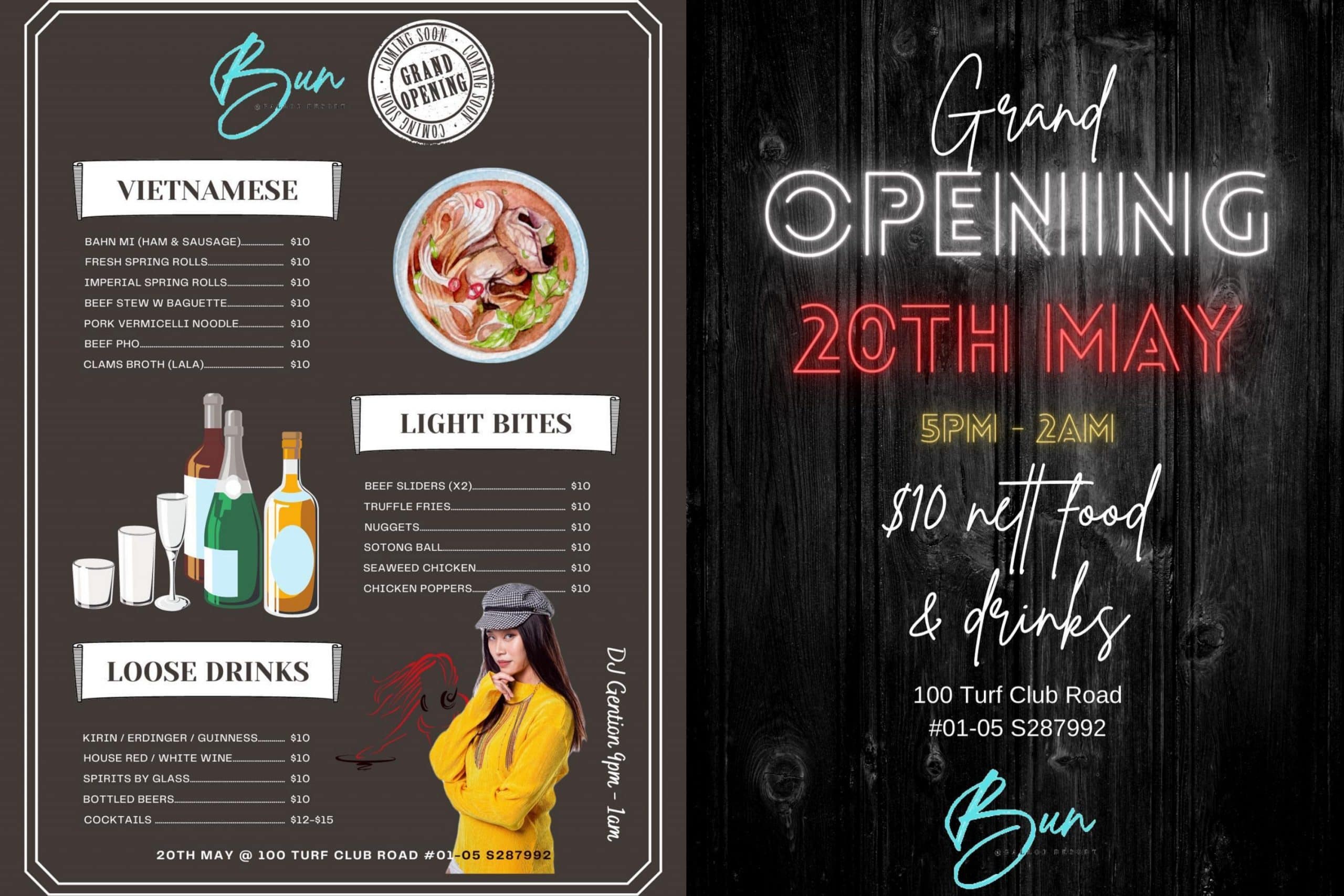Join BUN @ Gallop Resort for their grand opening on 20 May 2022 from 5pm to 2am and enjoy S$10 nett food and drinks all evening! There’ll be live DJ music and a whole lotta great vibes. Reservations will not be available — all you need to do is turn up and have fun.