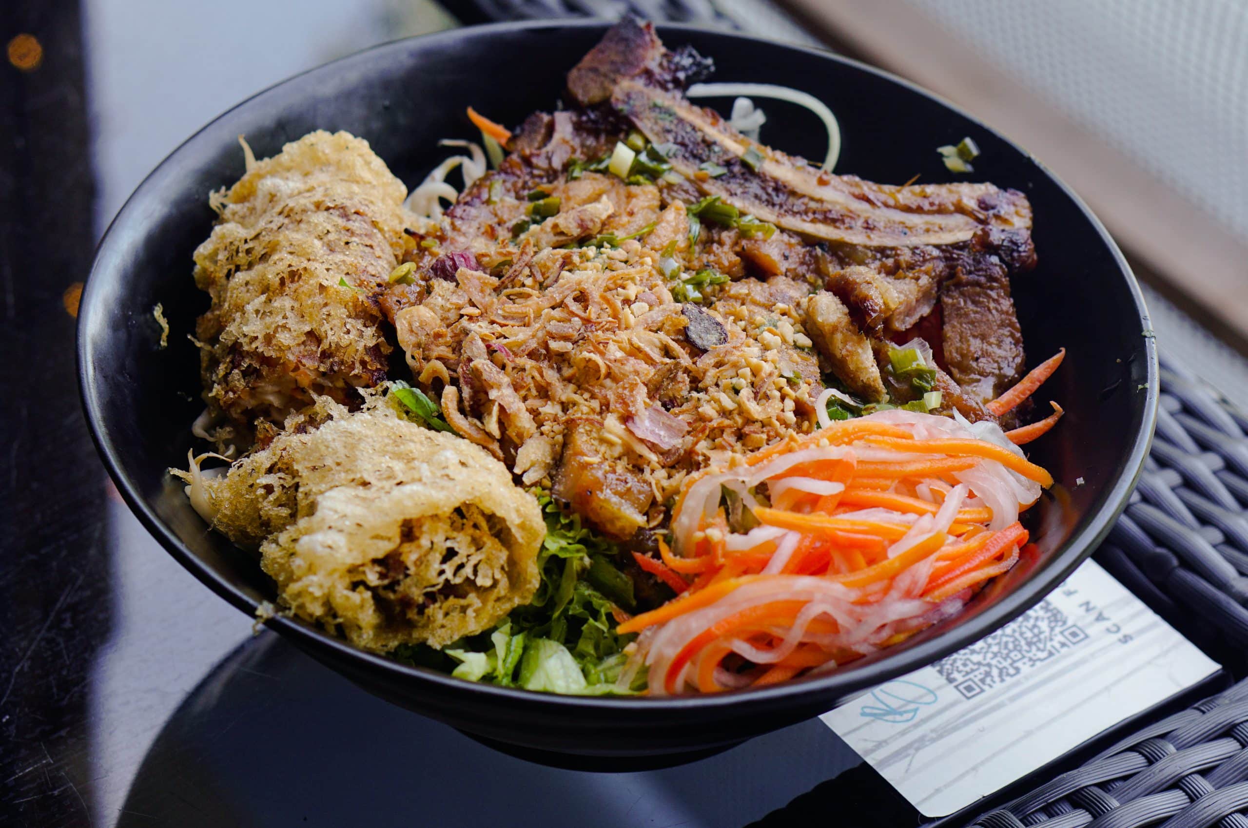 Pickled carrot, daikon, and herbs are neatly layered with ham and sausage imported from Vietnam. It’s fresh, tangy, and savoury, and has a great bite. Do note that all the food here is prepared by Vietnamese chefs, so you’re in good hands.