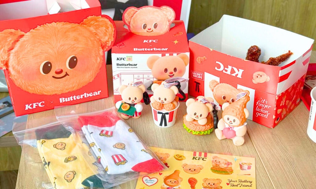 Start with the adorable Butterbear printed socks, available in two playful designs. The red version features Butterbear alongside KFC’s signature fried chicken bucket in 8-bit art form. Heads up that this is only available for food delivery orders via the KFC Singapore’s mobile app.