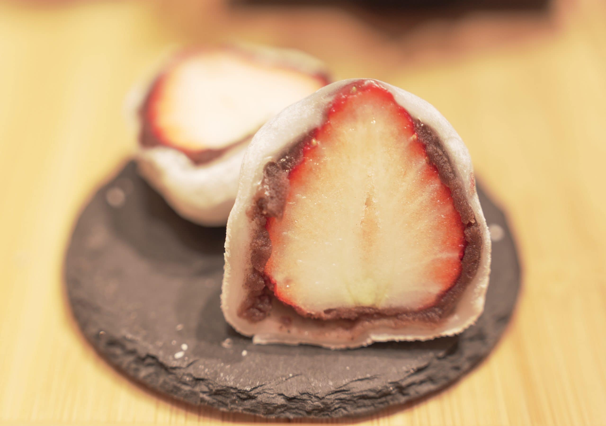 Think soft and chewy mochi stuffed with handmade Hokkaido azuki (red bean) paste and an entire fresh strawberry that was not only big but also sweet and fresh-tasting.