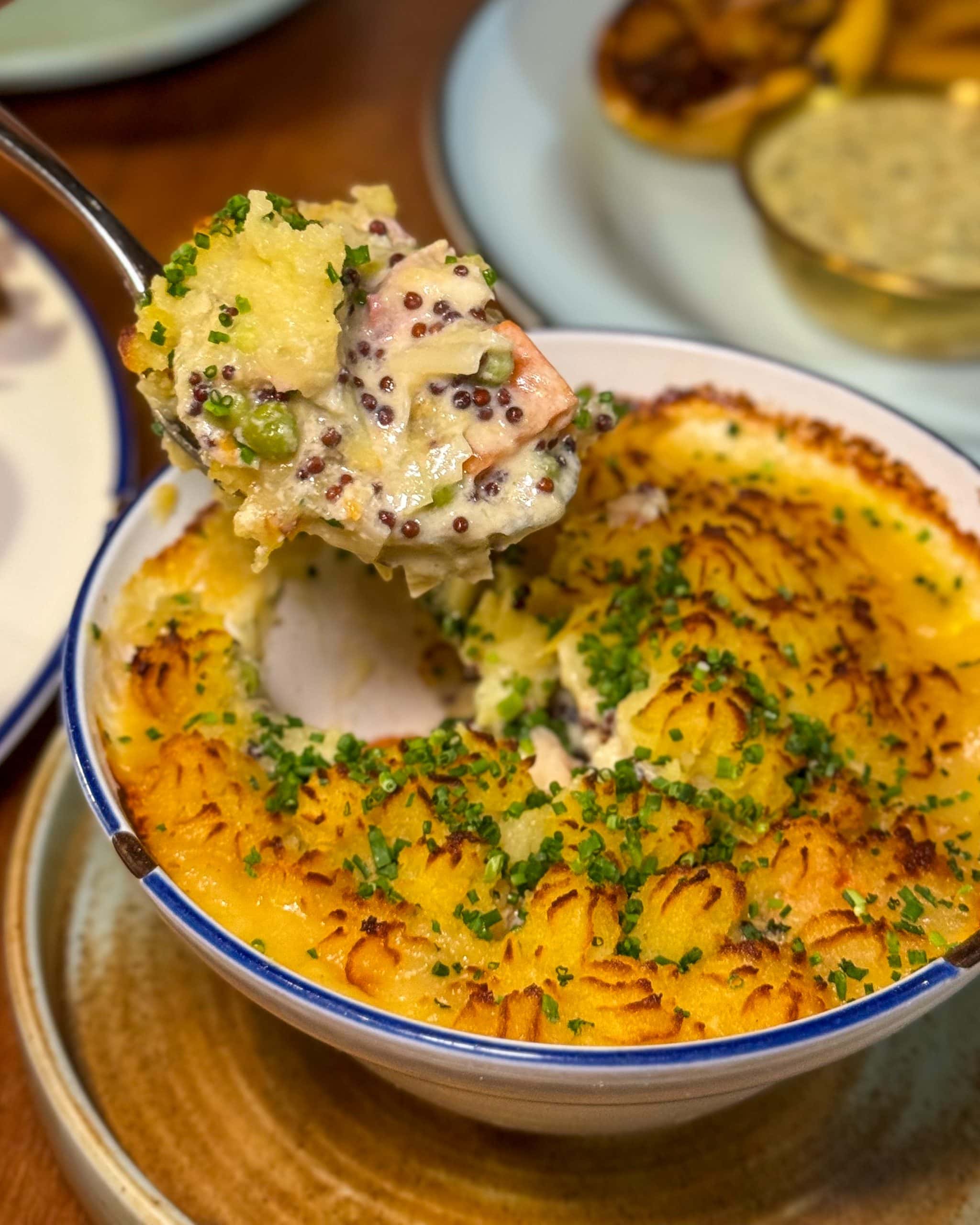 The golden potato mash top (with immaculate piping, if I may add) gave way to a filling of smoked herring, haddock, golden snapper, leeks and carrots, all bound in a thick, creamy concoction of fish stock, mustard seeds, and milk.