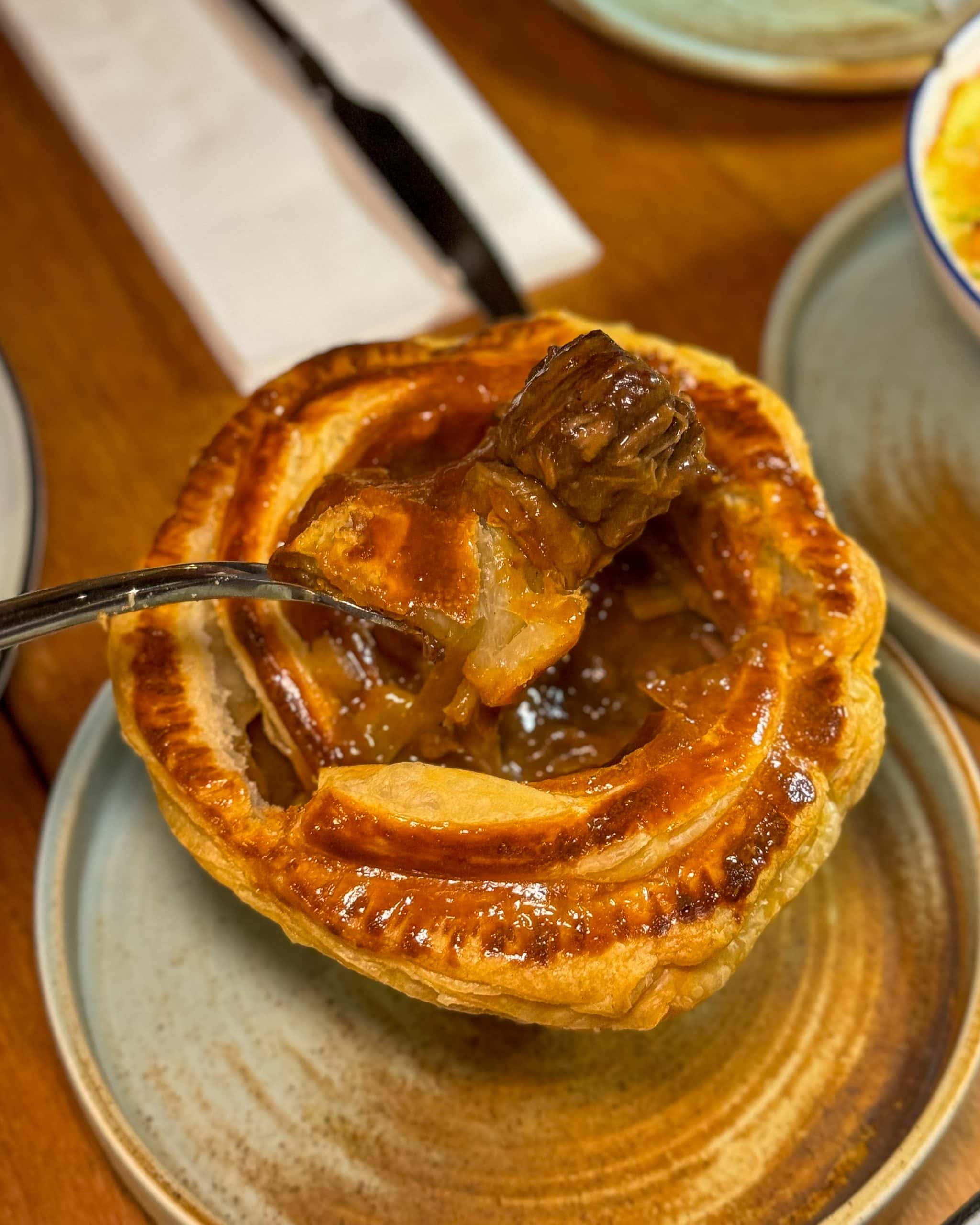 Another classic, the Steak & Guinness Pie (S$35), sees seared chunks of beef and tendons in a rich, deeply savoury gravy made by simmering chicken stock, Guinness, and aromatics for six hours. It’s then topped off with a puff pastry lid that has the right balance of flaky and doughy.