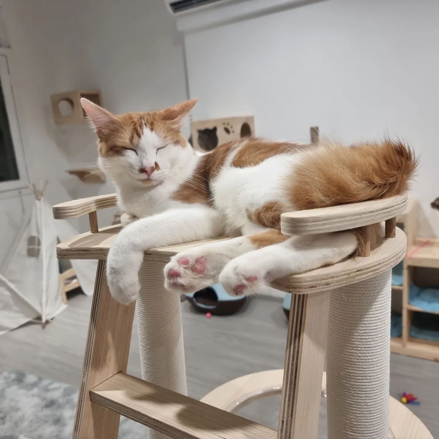 The cats at Cat Paradise are housed in a comfortable and spacious environment filled with many interactive toys, cosy beds and cushions as well as climbing platforms for them to explore to their hearts’ content — making them a very happy bunch of kitties.