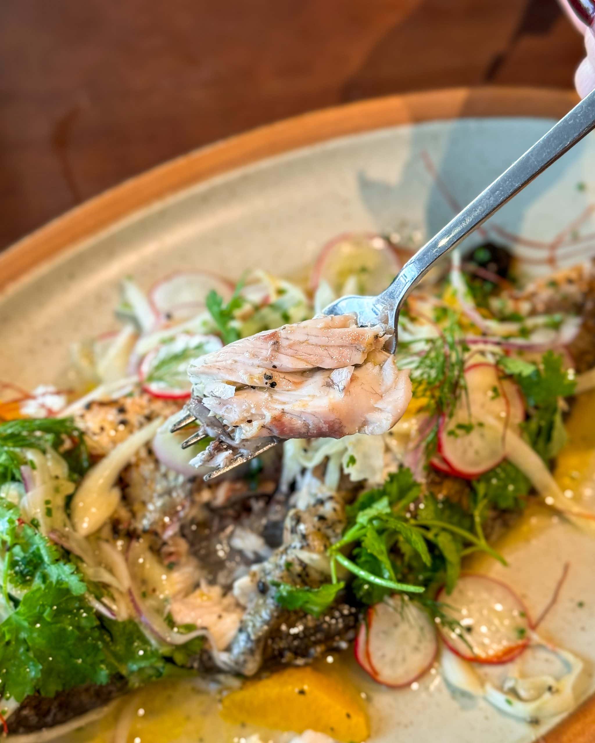 I’ve always preferred whole fish over individual fillets, due to how soft, juicy, and tender the meat gets, and this was no exception. The skin, however, was a bit on the salty side, so we recommend balancing those flavours with a generous squeeze of lime.