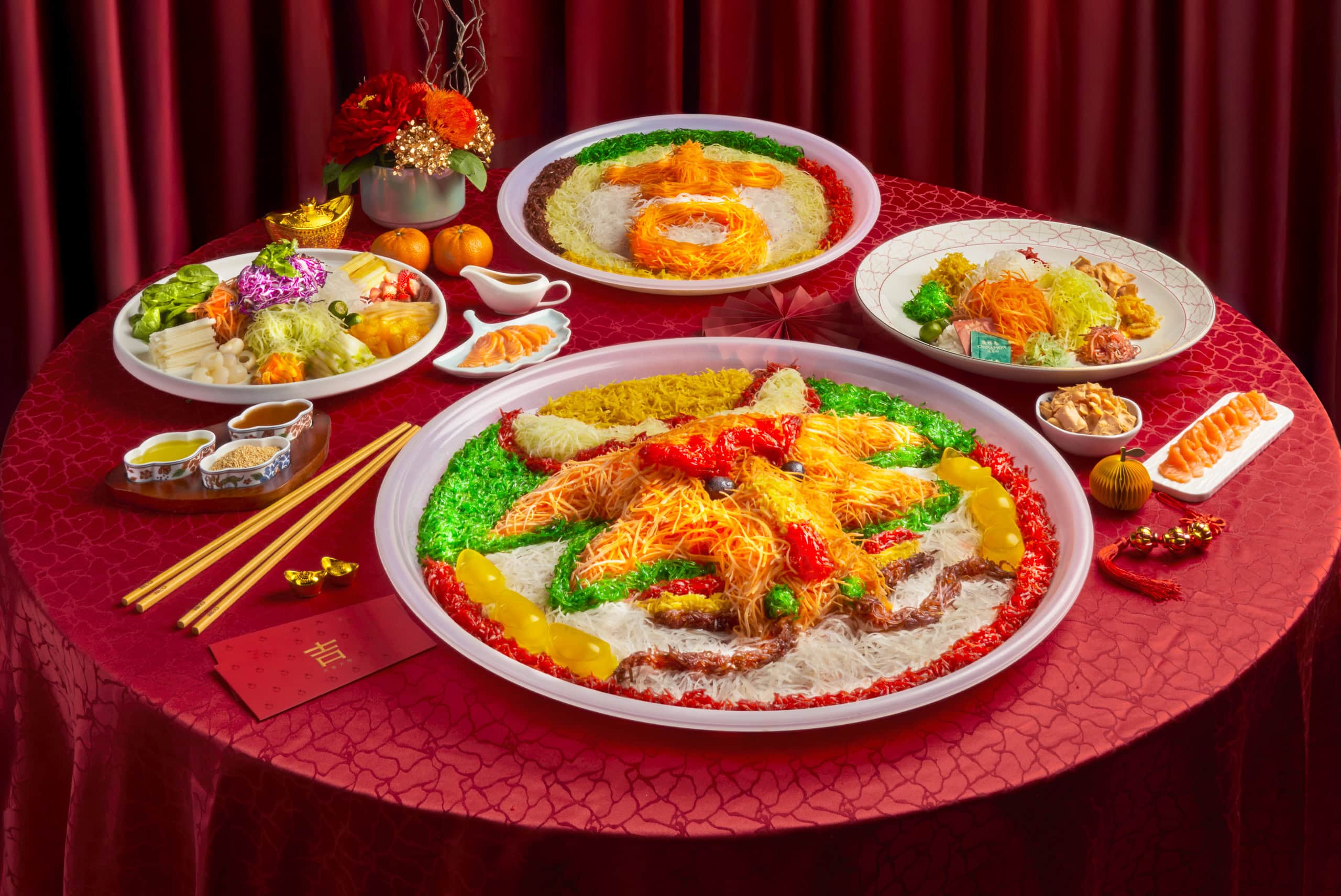 For smaller get-togethers, we recommend opting for the Chinese New Year Mini Buffet & Bundles. Bundles like the Treasure Bundle (S$488.88) come pre-curated with five delectable dishes, including Prosperity Salmon Yusheng, Deluxe Auspicious Treasure Pot, and Cantonese Duo Meat Platter.