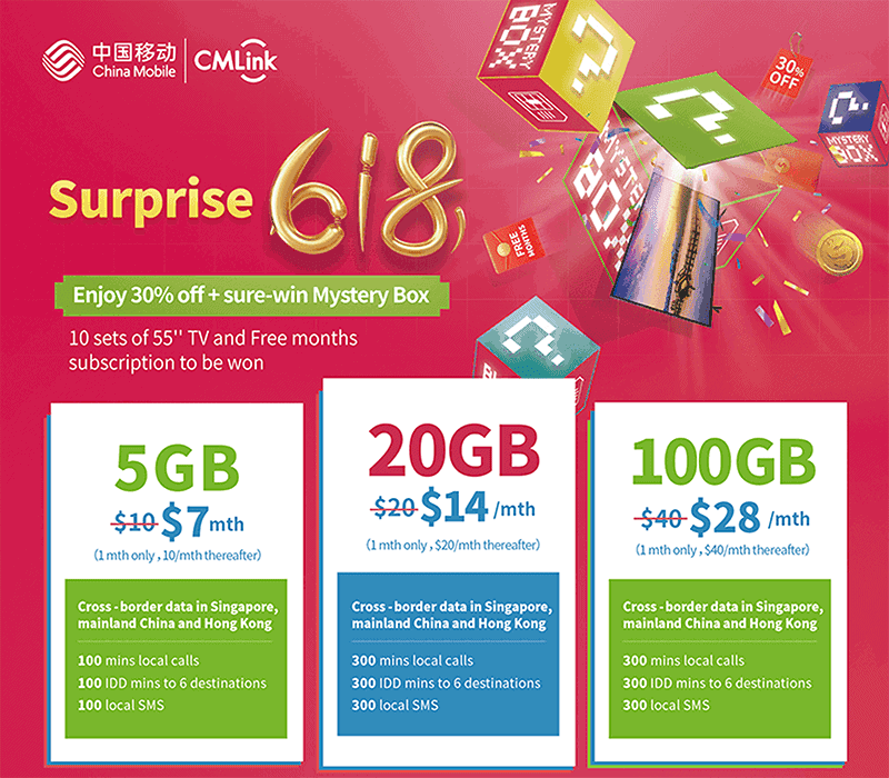 To sign up for a CMLink mobile plan, click here. Or, visit their website and follow their Wechat official account “小移在新加坡” for more information.