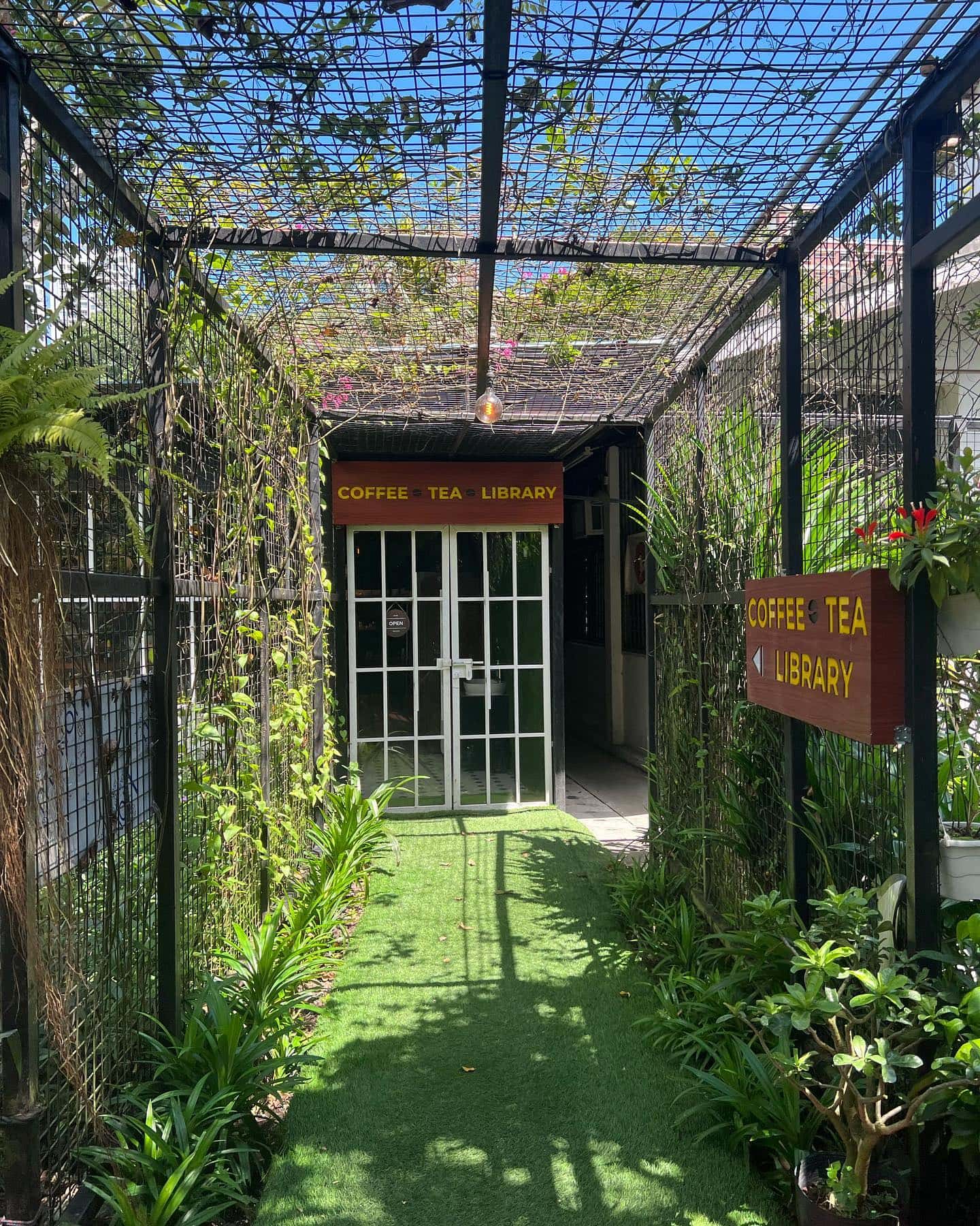 On the way to the cafe, you can interact with unusual birds like turkeys, roosters and other animals. This pet-friendly space extends to the Coffee Tea Library, so you can bring your furry friend along to unwind at the cafe. If you don’t have any pets, the cafe’s own little furry librarian, Noodle the dog, will make sure you won’t feel lonely.