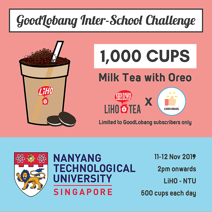 With 1000 free cups to be won, a poll was conducted to allow GoodLobang subscribers to decide where they want the GoodLobang treat. Previously during the regional challenge, the west side prevailed and won the 1000 Free Cups. This time the battle between NUS & NTU saw the latter hailing victorious.