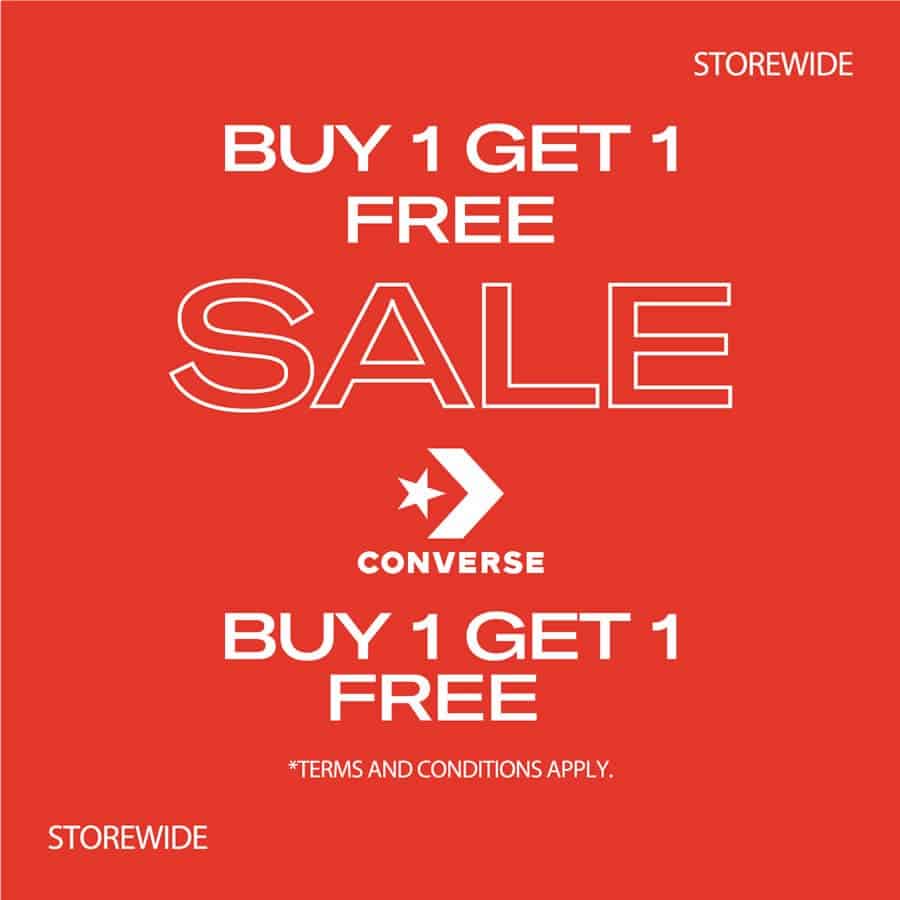 Converse fans rejoice! Converse will be having a Buy 1 Free 1 National Day storewide sale during this long weekend! The promotion will be applicable to ALL product in stores, except for their National Day bundle of Classic White Chuck Taylor All Star Ox + City Tee.