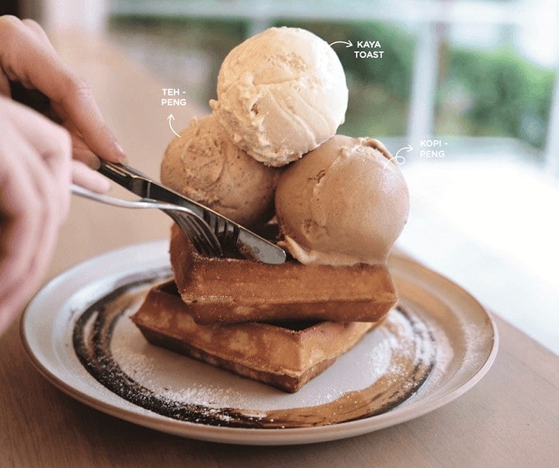 A breakfast staple in Singapore, it’s no surprise that the Kaya Toast has made its way onto the dessert table. The pandan-flavoured ice cream is made from fresh pandan leaves and caramelised coconut milk, then mixed with a generous amount of buttered toast.