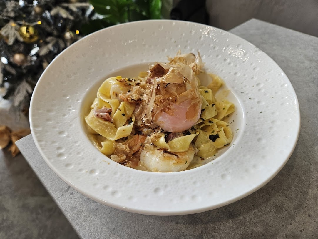 Bulk it up even more with fusion pasta dishes, such as the Japanese Inspired Carbonara Fettuccine (S$16), a creamy salted egg pasta with prawns, bacon, bonito flakes, and a soft 63 degree egg.