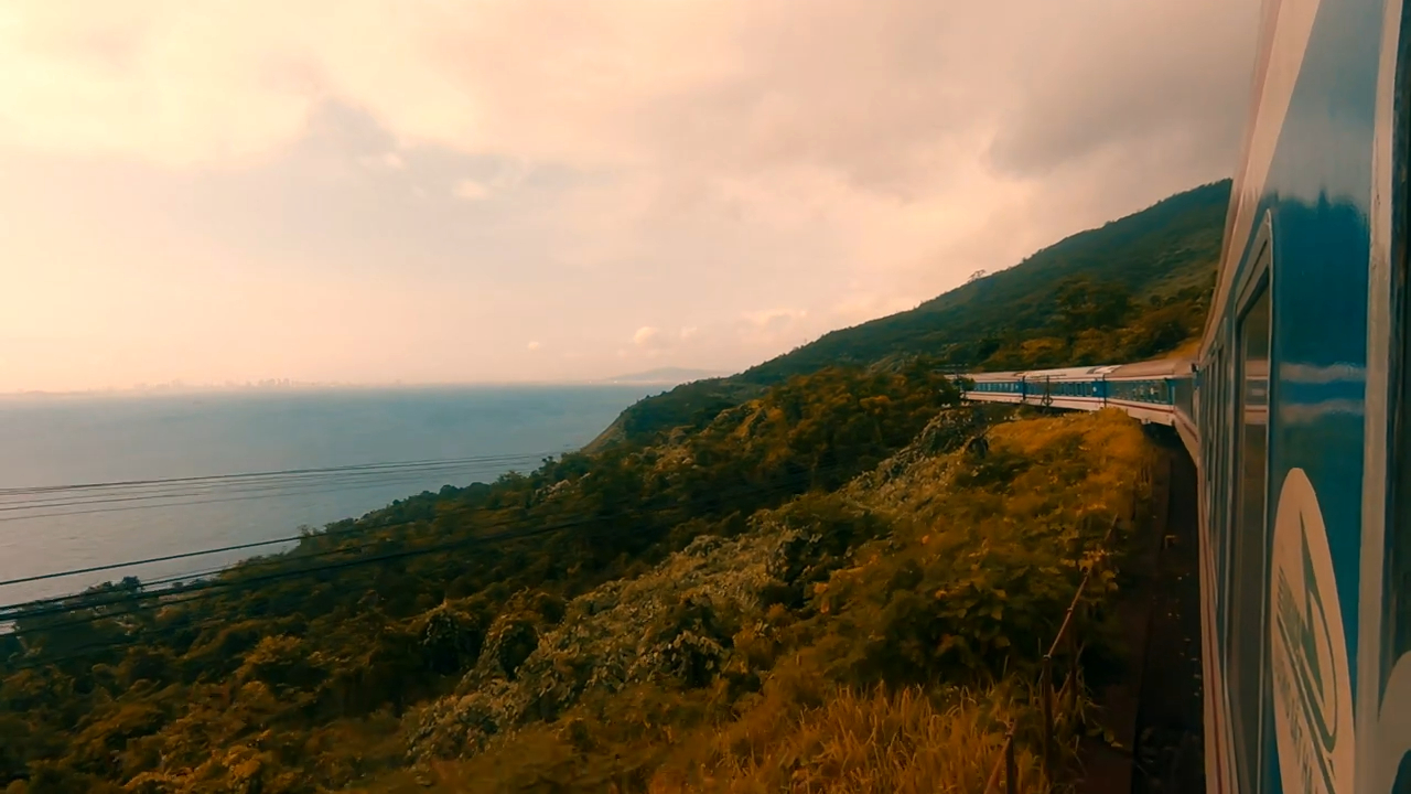 Aim for the trains that run during sunrise and sunset — the sky will be awash with brilliant hues of pink, red and purple that contrast with the blue seas, and even the mountains will turn gold under the rays of the sun.
