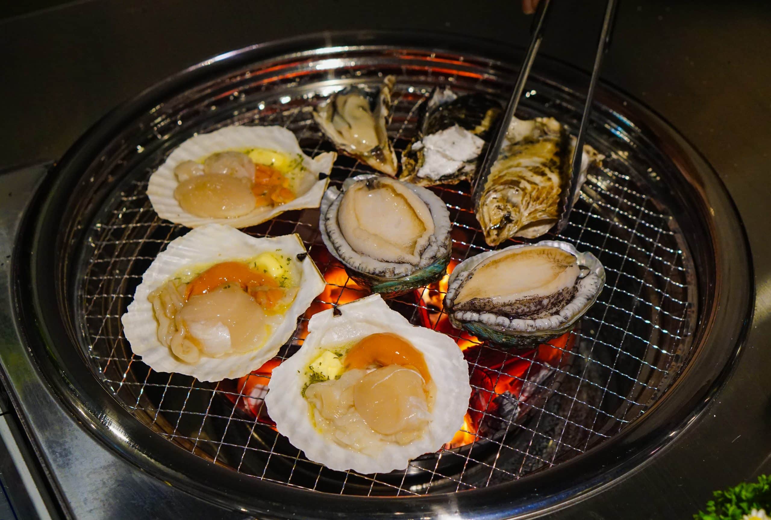 Moving on to the stars of the show, the BBQ seafood is best enjoyed through the Seafood Set (S$118), an enticing array of oysters, scallops, live abalones, squid, and grilled mackerel.