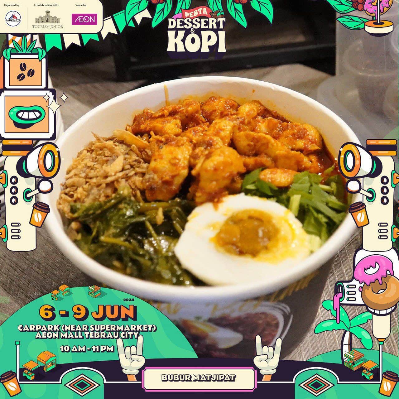 Just 15-minutes away from the causeway, Dessert & Kopi will be taking place from now till 9 June 2024 from 10am–11pm at the car park right outside AEON Mall.