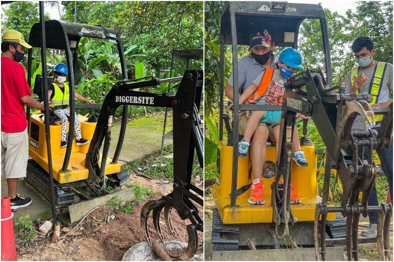 In their safety vests and helmets, your kids will thoroughly enjoy their time at Diggersite as they operate the kid-friendly excavators (that’s two words I never thought I’d use) to try to dig up sand, pick up branches and other objects. It definitely beats them staying at home and watching the iPad or TV all day.