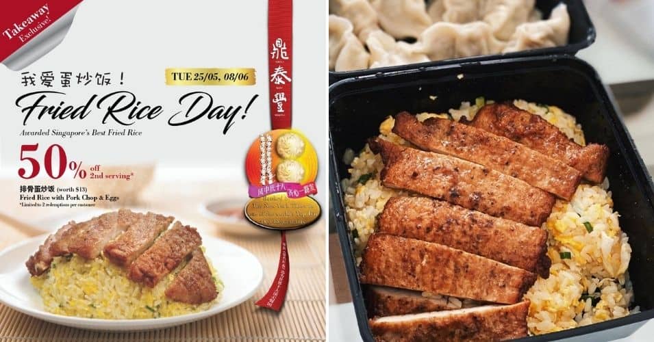 Everyone can enjoy 50% off every 2nd order of Pork Chop & Egg Fried Rice (S$13), limited to only 2 redemptions per customer.