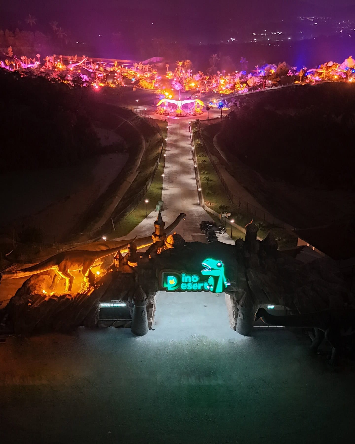 To experience the ultimate Jurassic Park experience, you should come by after the sunsets as the park transforms into a dark and thrilling dinosaur enclosure. The attraction also has an ‘Aurora Night’ experience with fluorescent lights illuminating certain areas of the park.